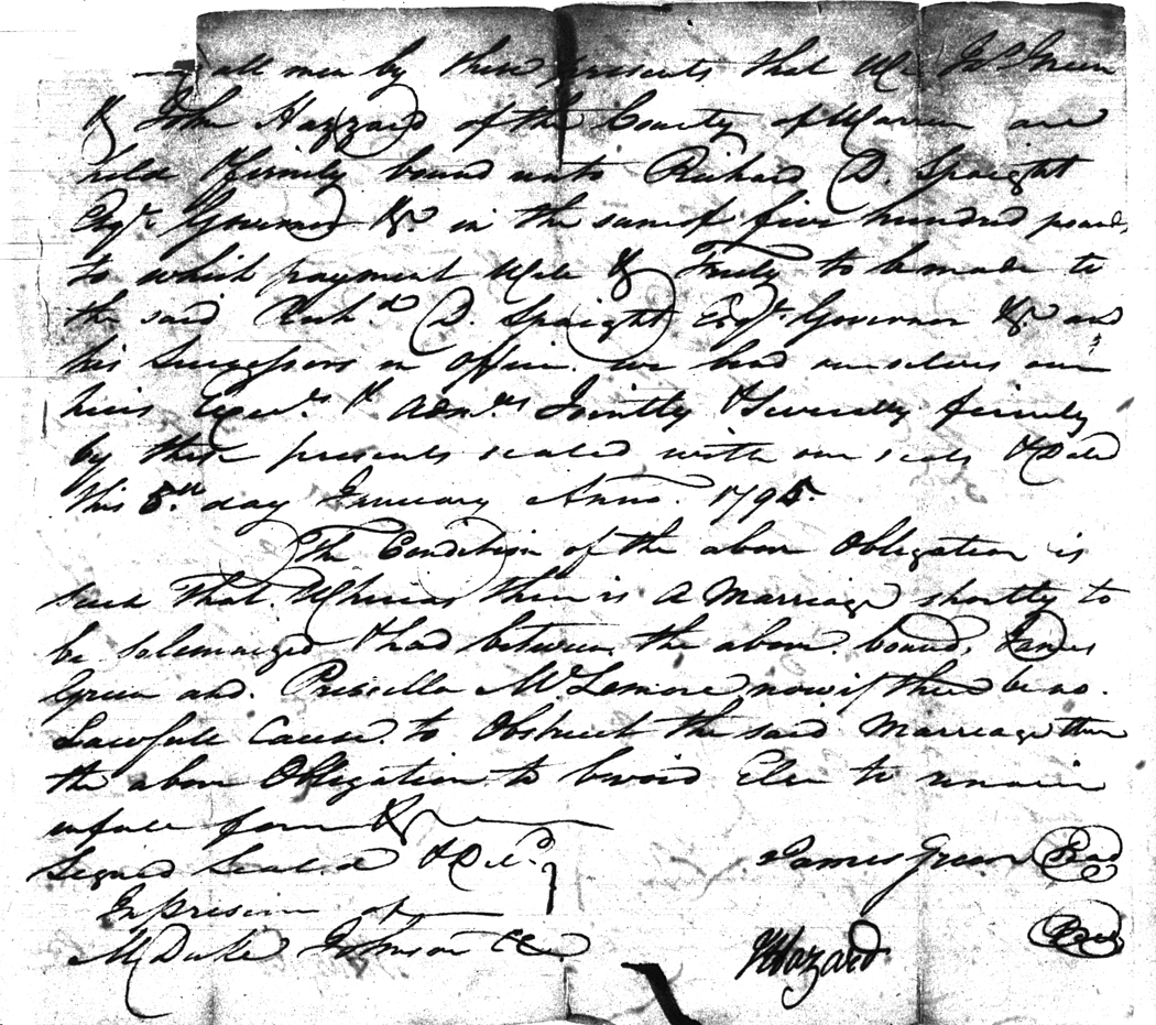 Green James Mclamore Priscilla 05 Jan 1795   John Hazelwood White