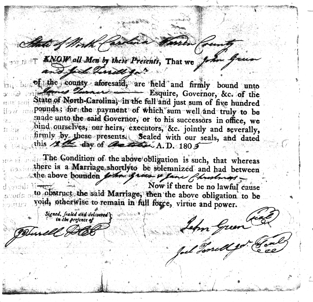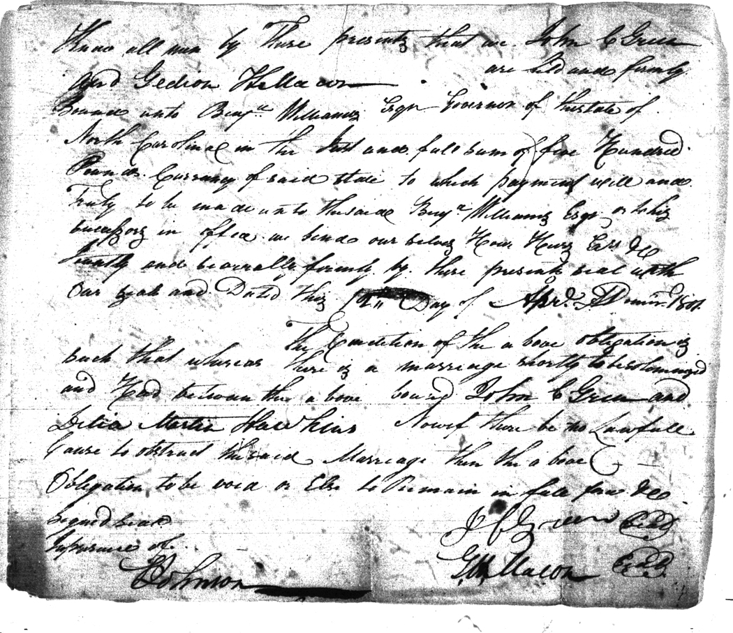 Green John C. Hawkins Delia Martin 14 Apr 1801   Gideon H. Macon White