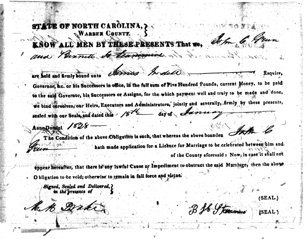 Green John C Macon E 18 Jan 1828   Bennett S. Stummine White