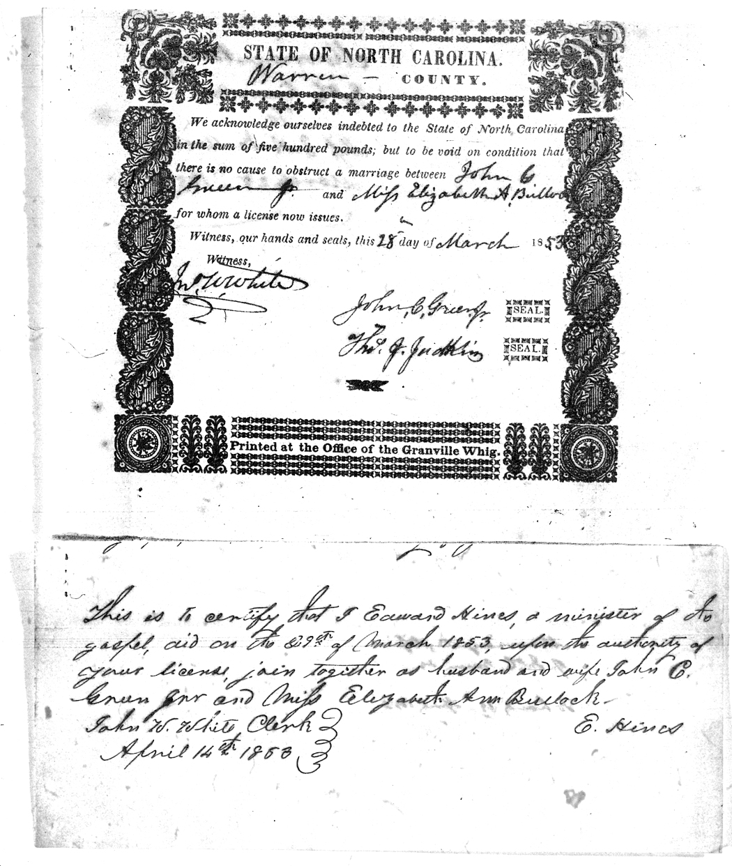 Green George W Cook Mary 14 Apr 1849   Samuel Vines White