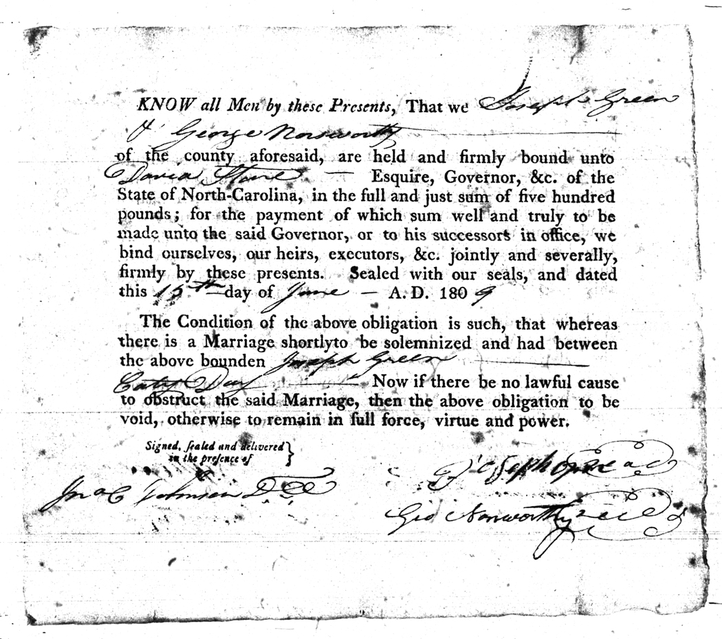Green Joseph Day Caty 15 Jun 1809   George Norsworthy White
