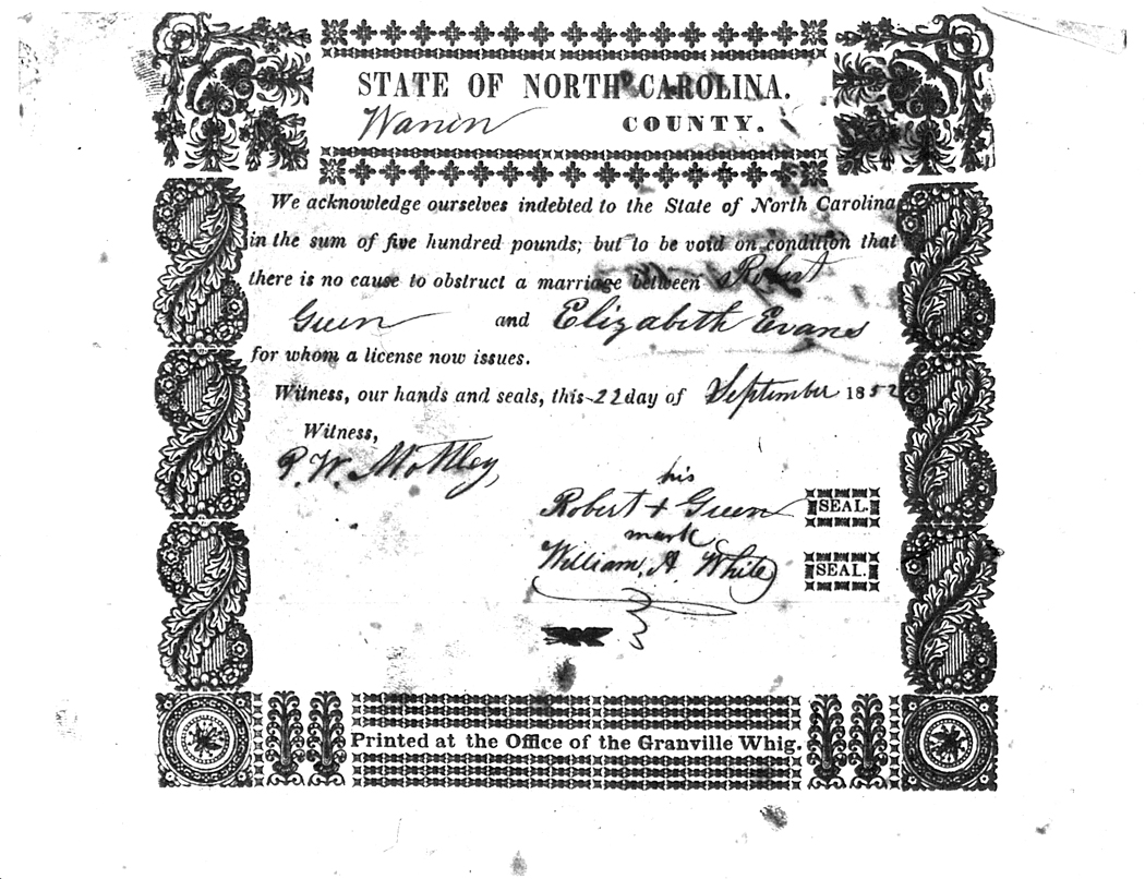 Green Robert Evans Elizabeth 22 Sep 1852   William A. White Colored
