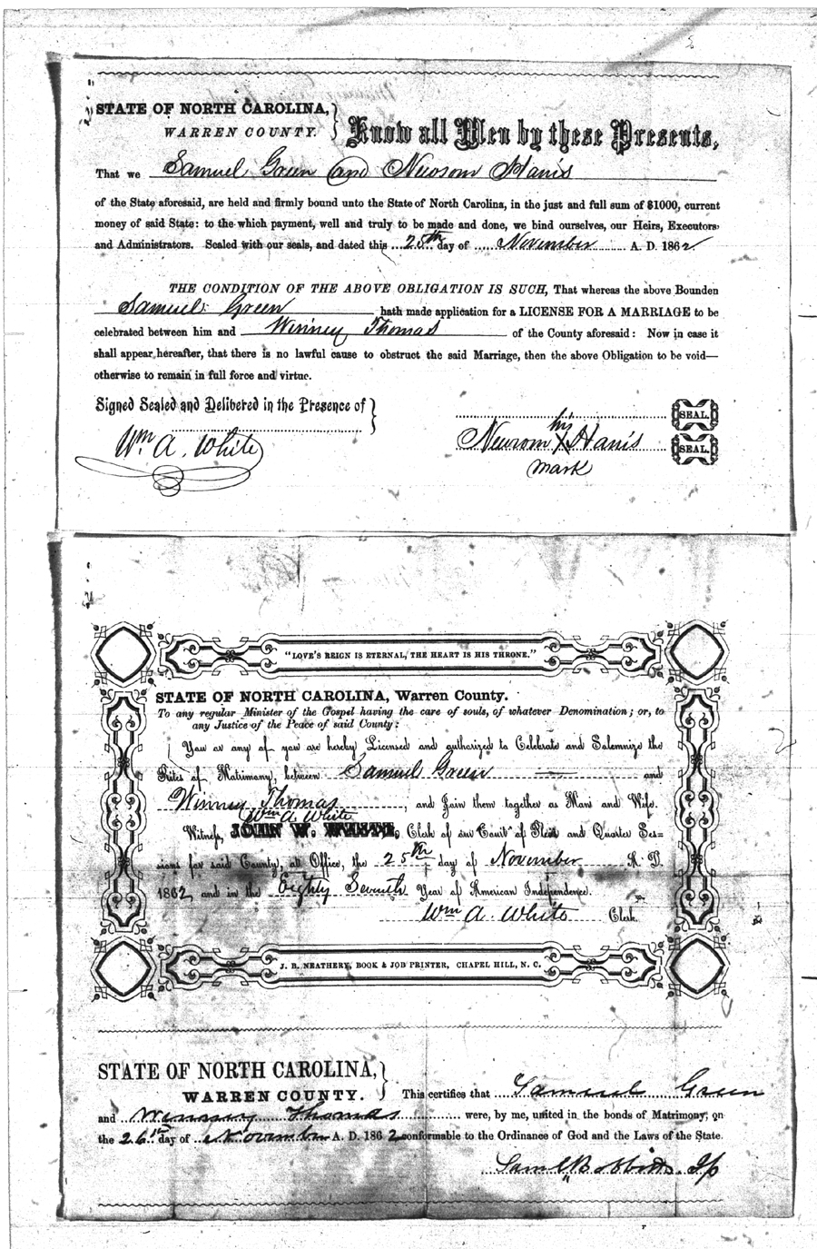 Green Samuel Thomas Winney 25 Nov 1862   Newsom Harris Colored