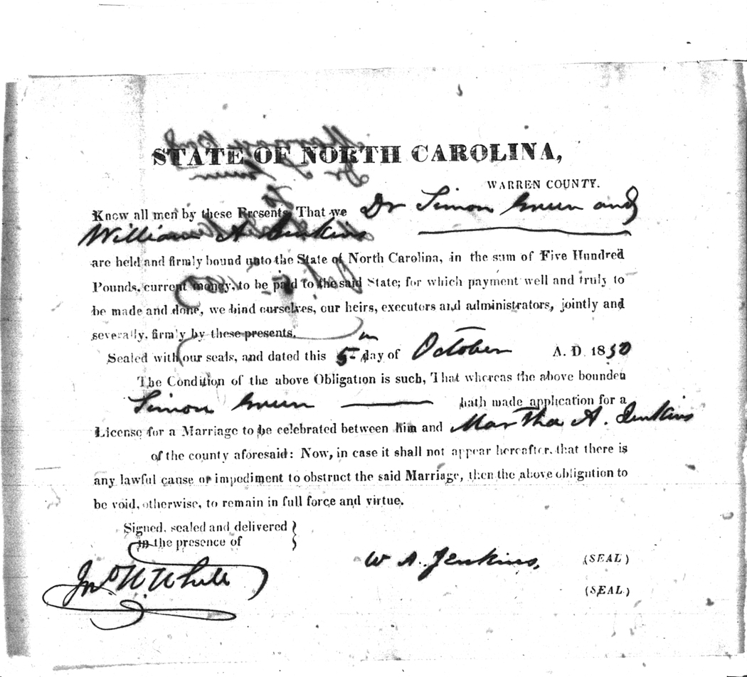 Green Simon Dr. Jenkins Martha A 05 Oct 1850   William A. Jenkins White