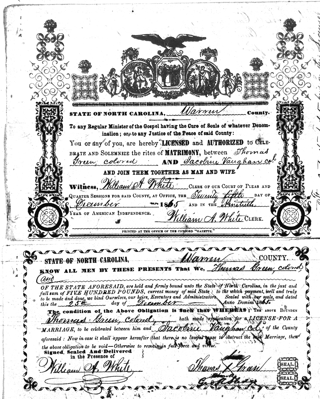 Green Thomas Vaughan Jacobine 25 Dec 1865   George R. Sledge Colored