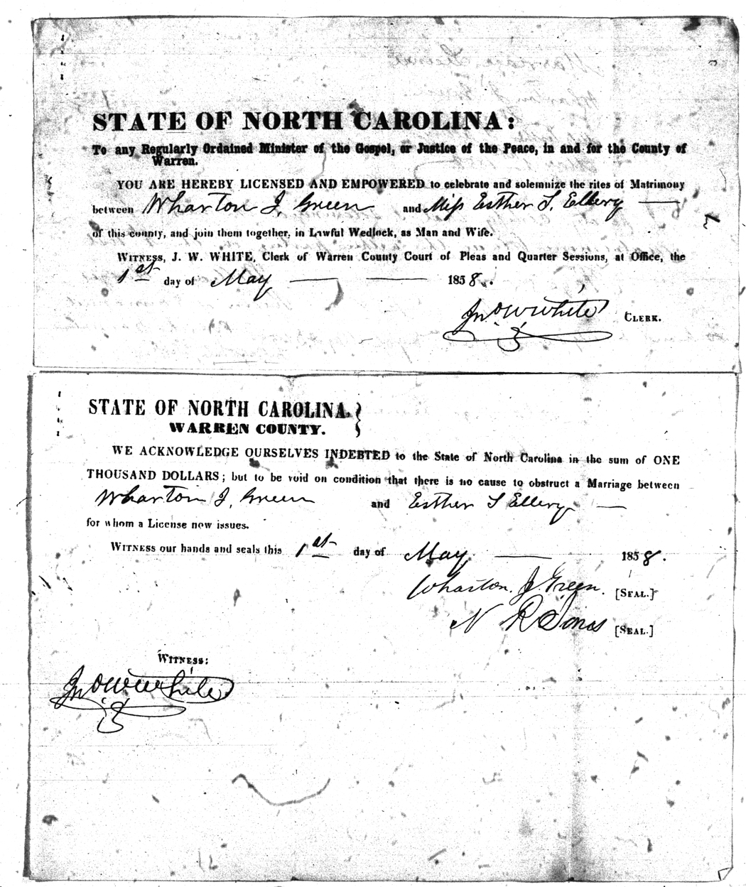 Green Wharton J Ellery Esther S 01 May 1858   N. R. Jones White