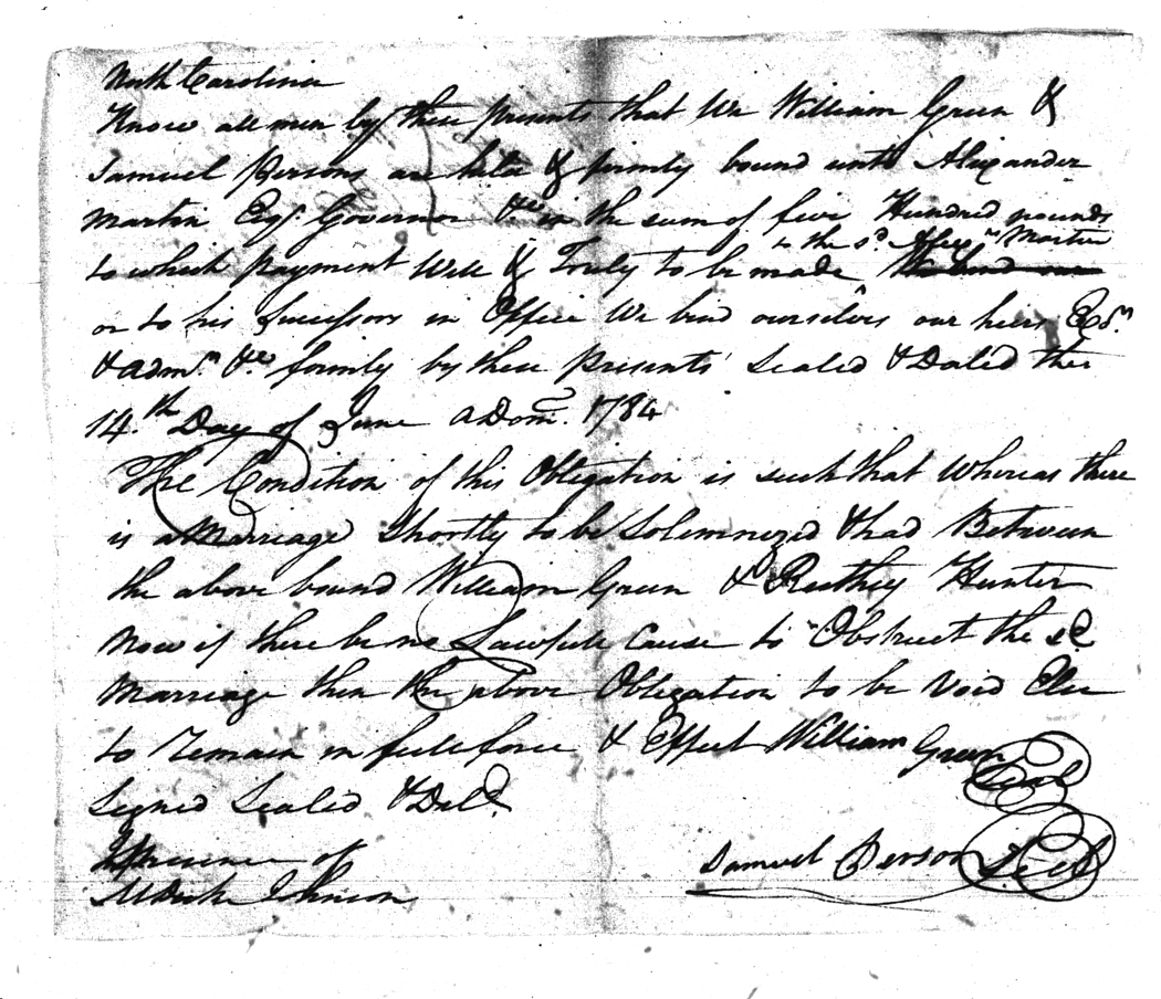 Green William Hunter Ruthey 14 Jun 1784   Samuel Person White