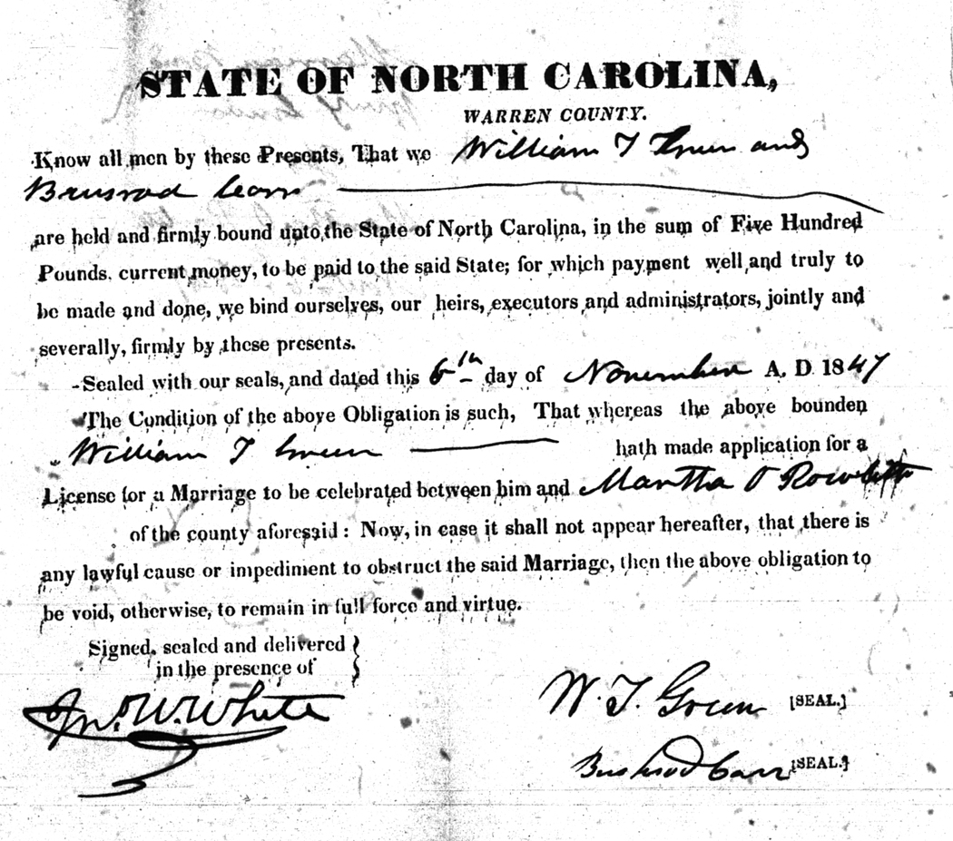 Green William T. Rowlett Martha O. 06 Nov 1847   Brusrod Carr white
