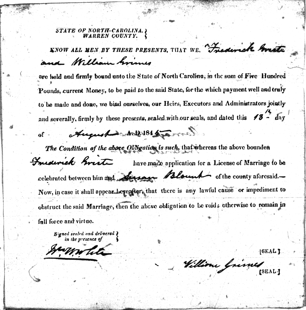 Grist Frederick Blount Susannah 13 Aug 1845   William Grimes white