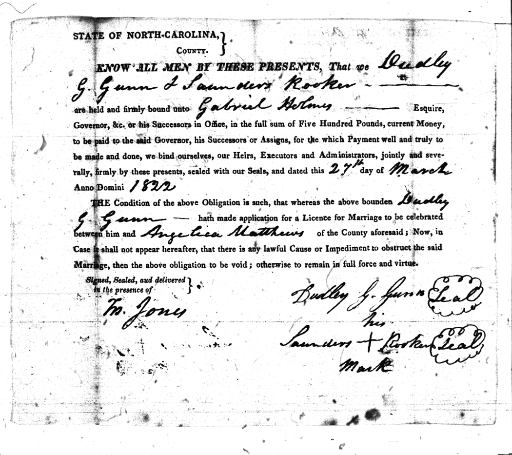 Gunn Dudley G. Matthews Augustine 27 Mar 1822   Sanders Rooker White