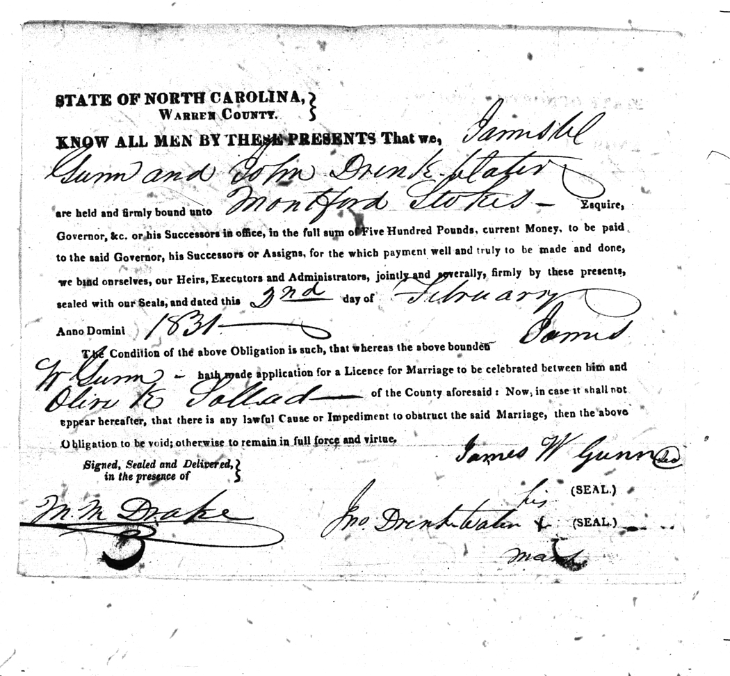 Gunn James W. Sallad  Olive K 02 Feb 1831   John Drinkwater White