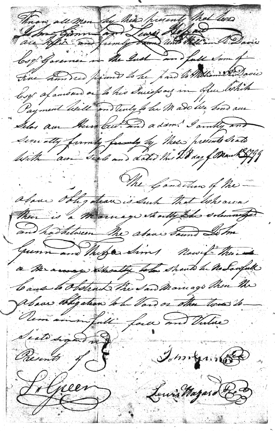 Gunn John Sims Theza 28 Mar 1799   Lewis Hazzard White