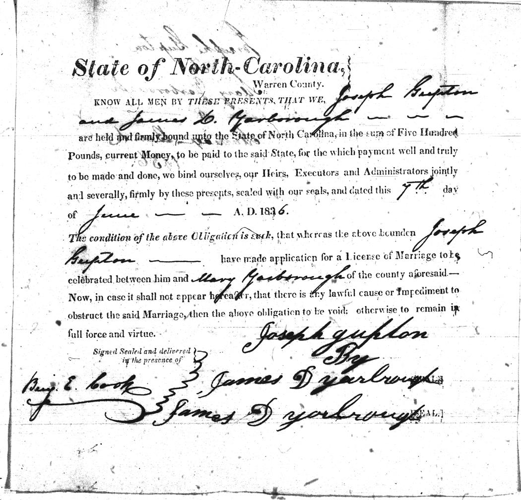 Gupton Joseph Yarborough Mary 07 Jun 1836   James D. Yarborough White