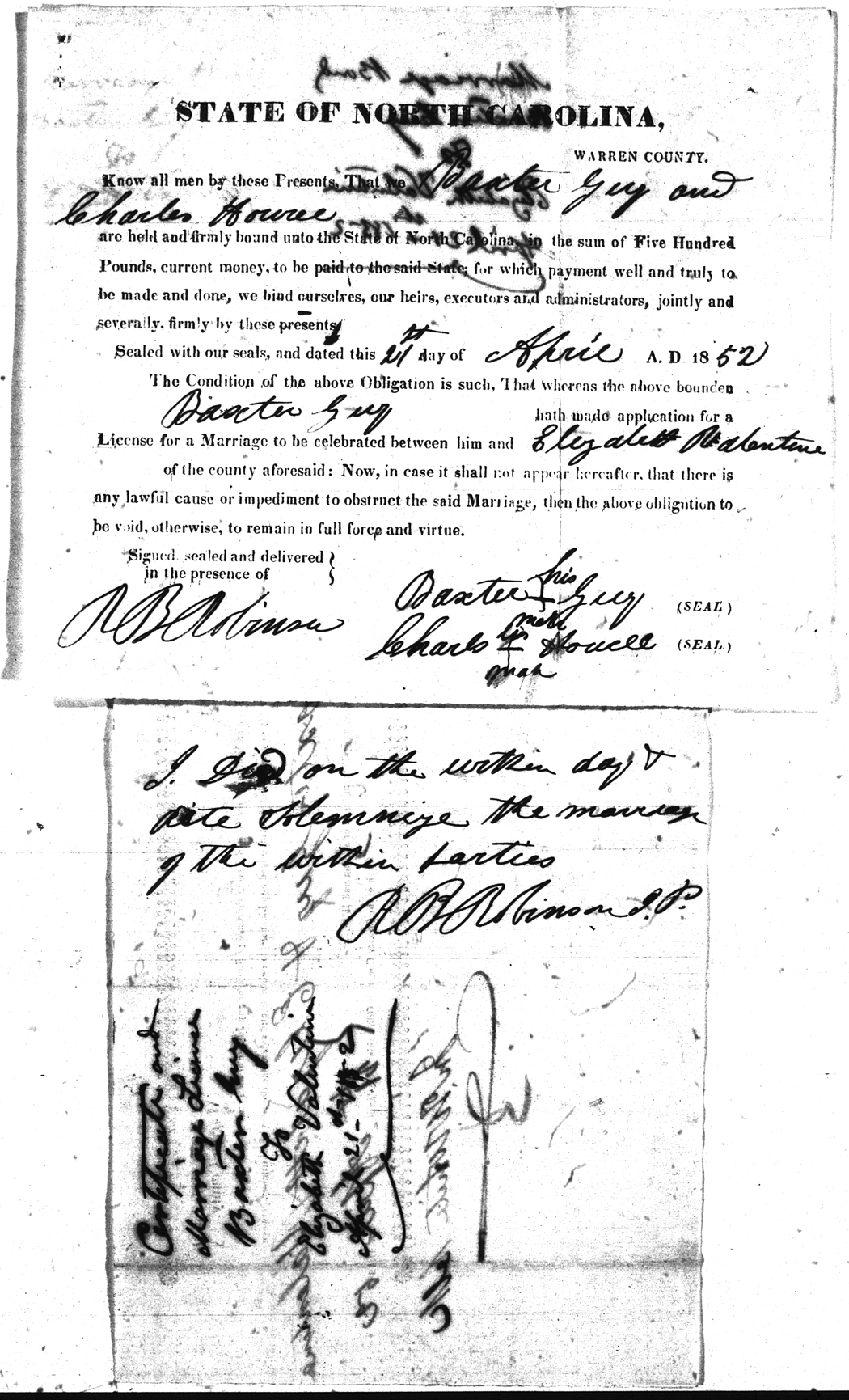 Guy Baxter Valentine Elizabeth 21 Apr 1852   Charles Howell Colored