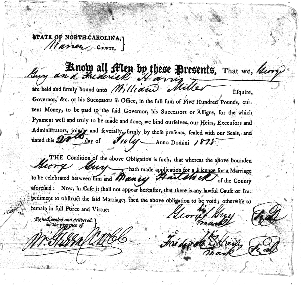 Guy George Haitstock (Haithcock?) Nancy 20 Jul 1815   Frederick Harris Colored