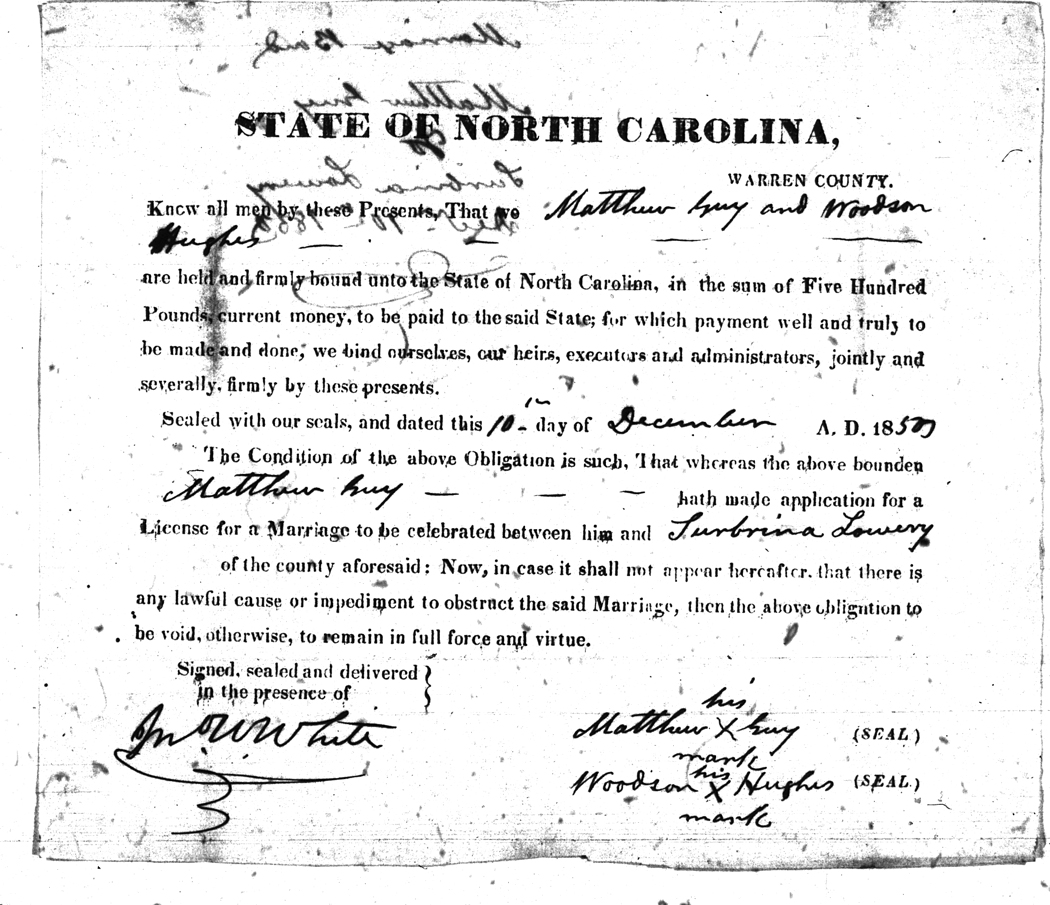 Guy Matthew Lowery Surbrina 10 Dec 1850   Woodson Hughes Colored