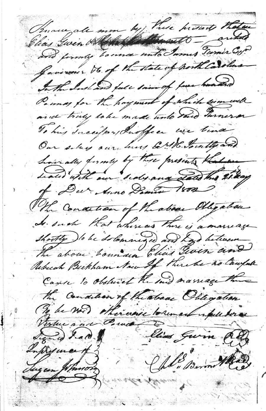 Gwin Elias Beckham Rebecah 21 Dec 1802   Charles Bennett White