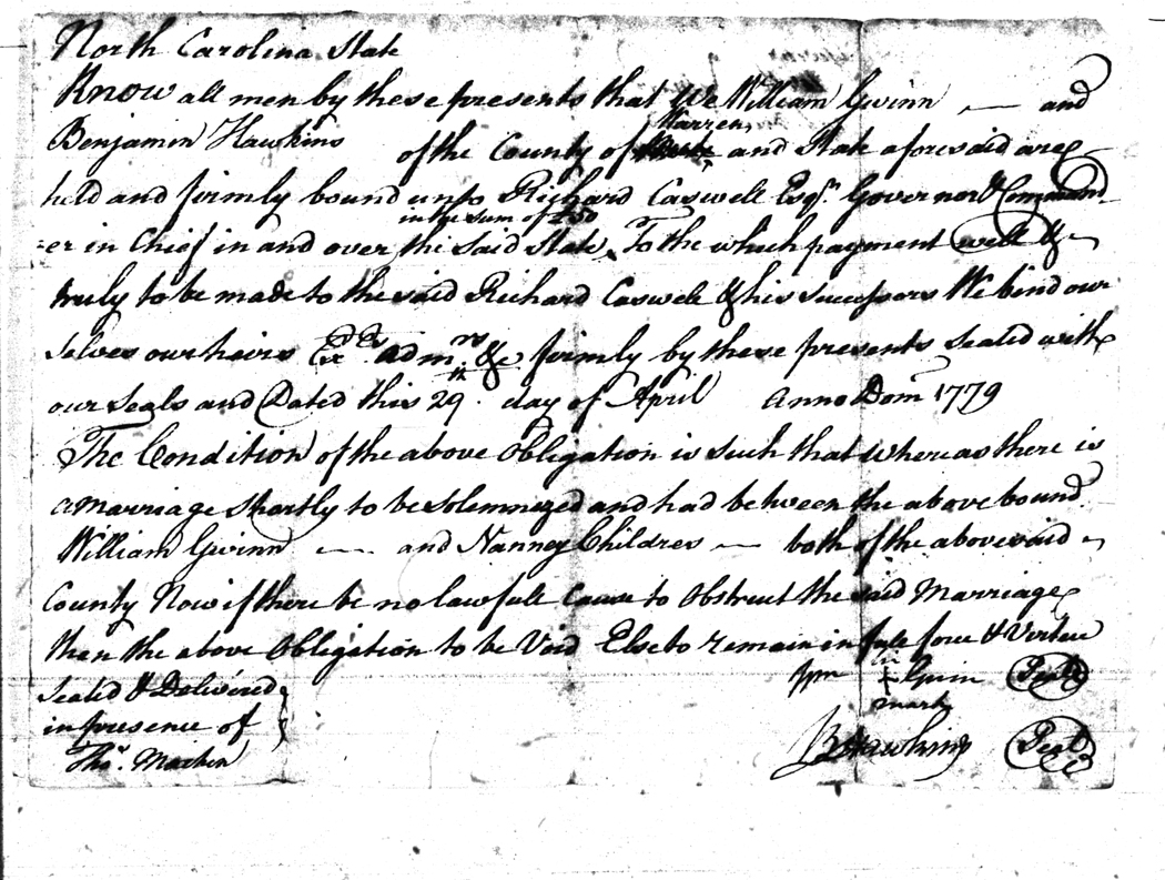 Gwinn William Childress Nancy 29 Apr 1779   Benjamin Hawkins White