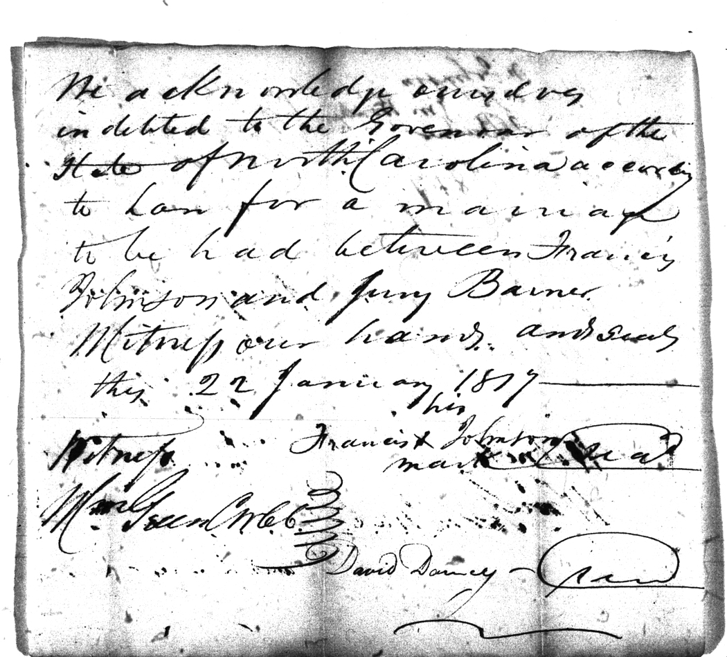 We should all thank Ginger Christmas-Beattie for all the work that has gone into getting the marriage bond images online. Not only has she done them once but twice after she found a way to tease the process to get a clearer image from the old microfilm. This is something I could not have done in years but Ginger has always been able to do more in less time than anyone I know. |