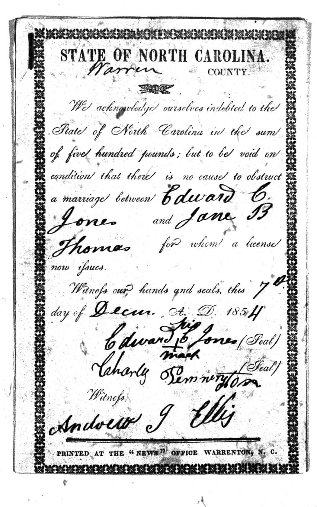 Warren County Marriage Bond Images 1779-1868 |