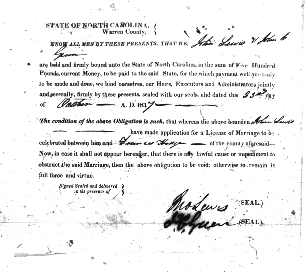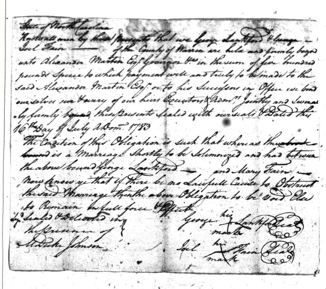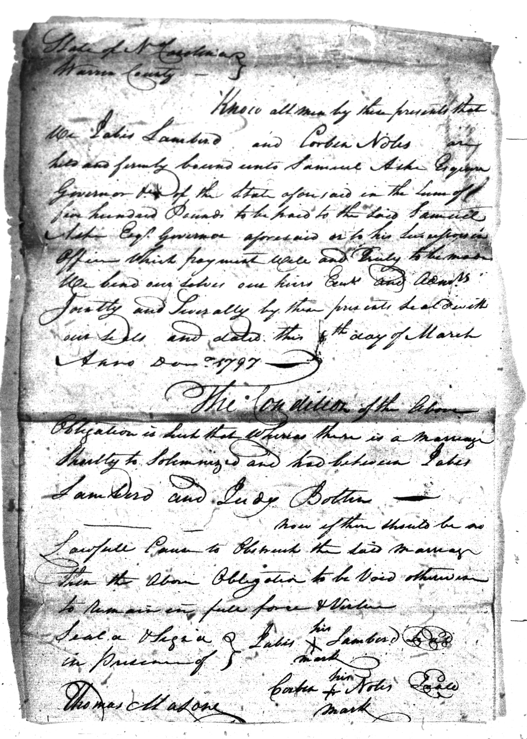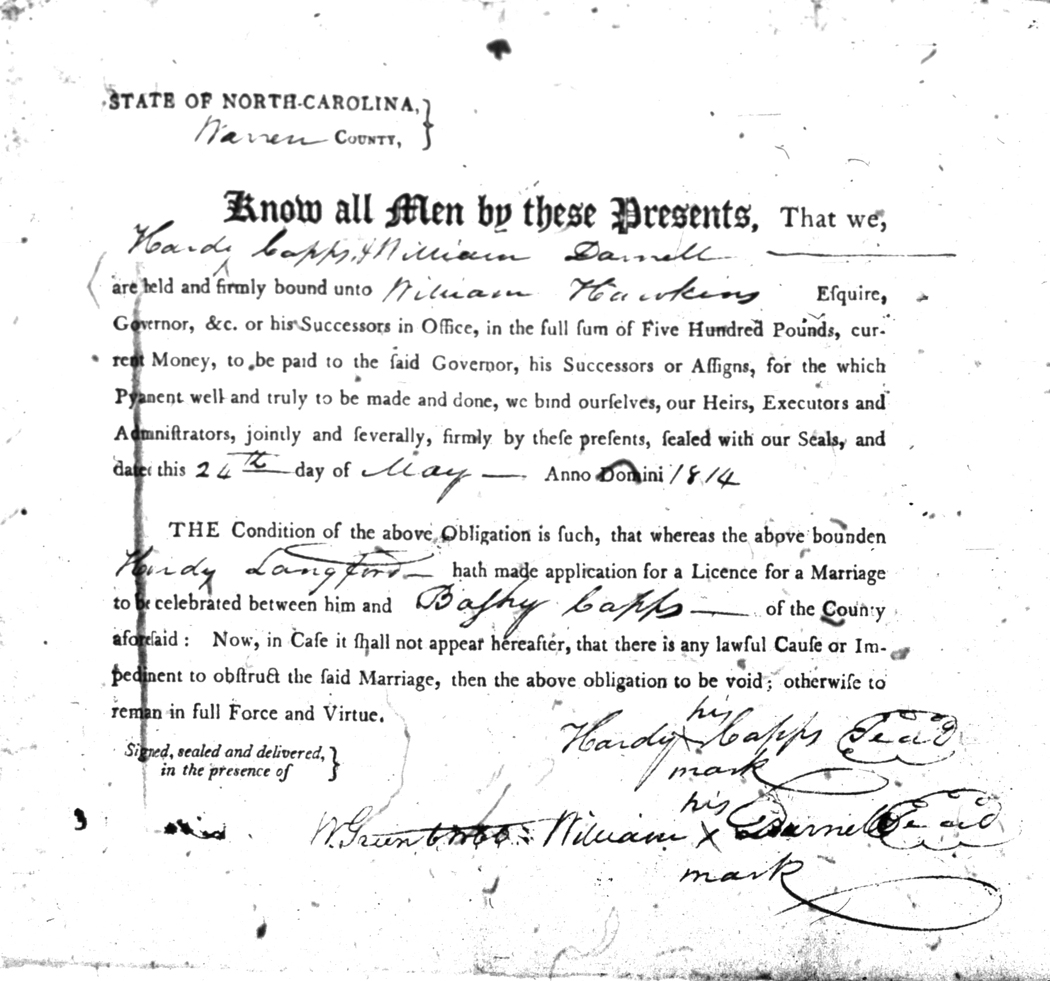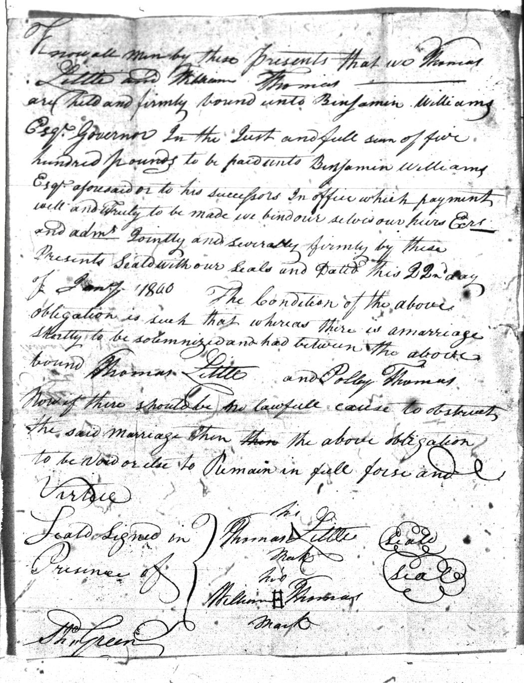 We should all thank Ginger Christmas-Beattie for all the work that has gone into getting the marriage bond images online. Not only has she done them once but twice after she found a way to tease the process to get a clearer image from the old microfilm. This is something I could not have done in years but Ginger has always been able to do more in less time than anyone I know. |
