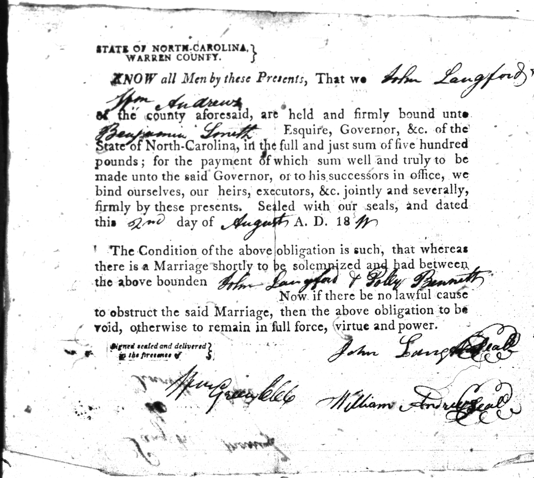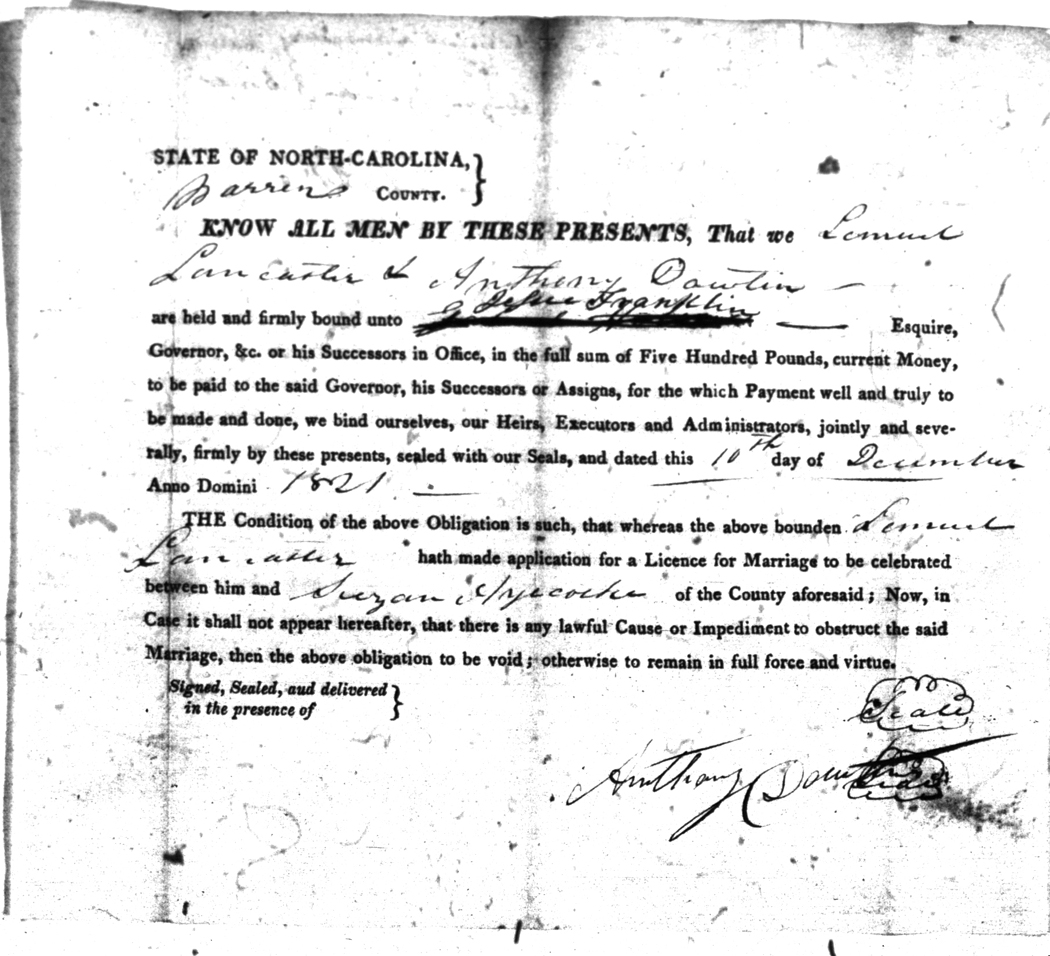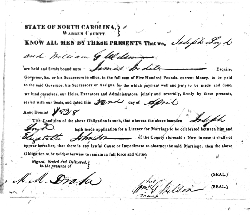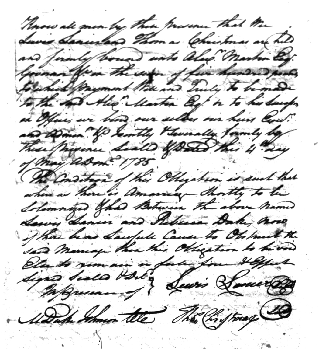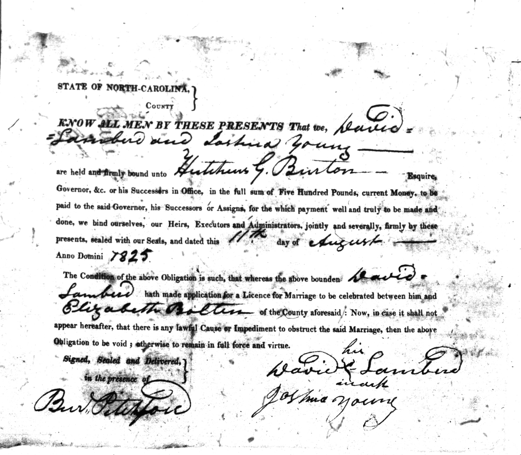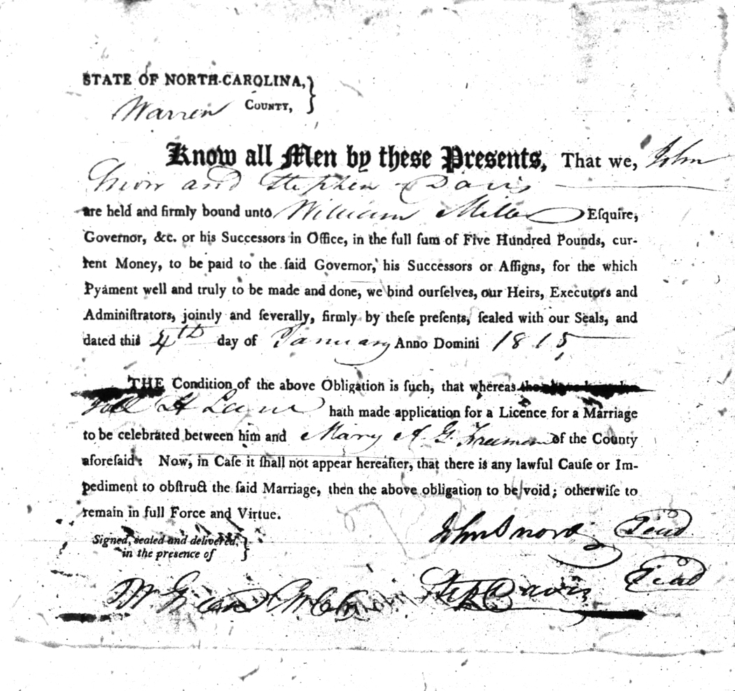 We should all thank Ginger Christmas-Beattie for all the work that has gone into getting the marriage bond images online. Not only has she done them once but twice after she found a way to tease the process to get a clearer image from the old microfilm. This is something I could not have done in years but Ginger has always been able to do more in less time than anyone I know. |