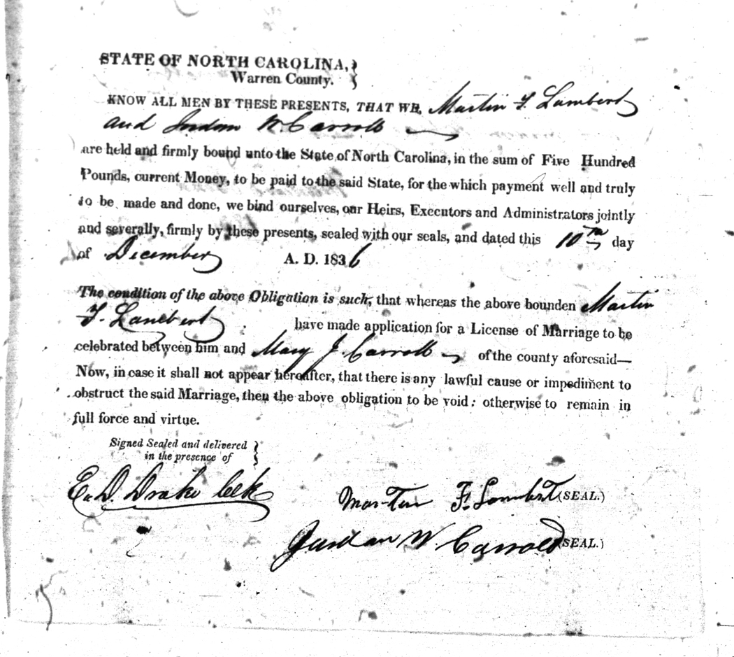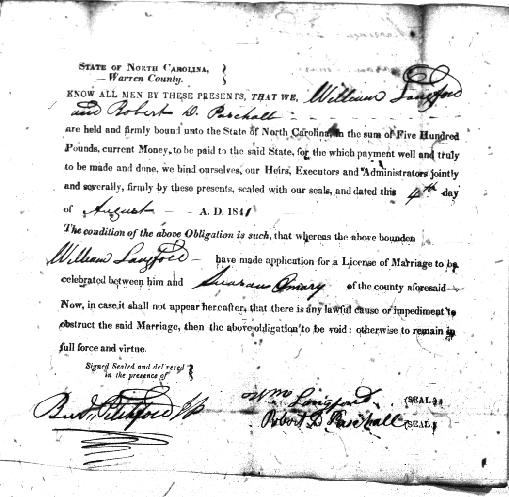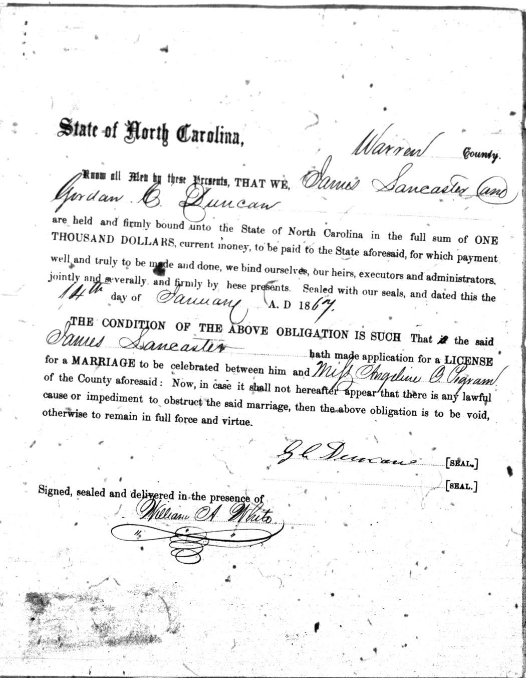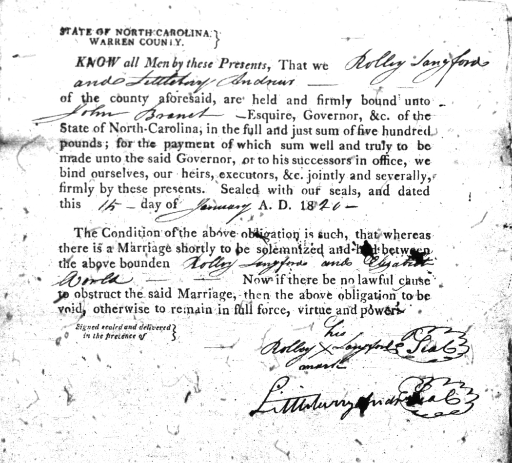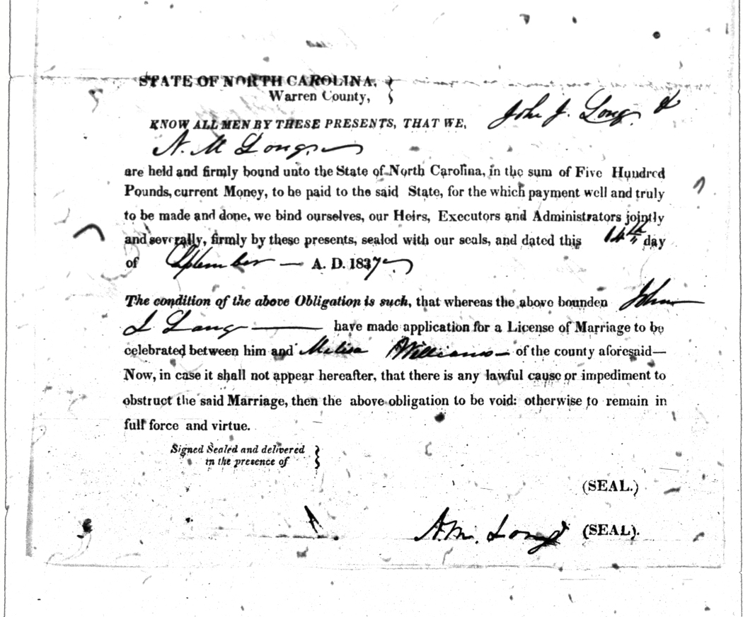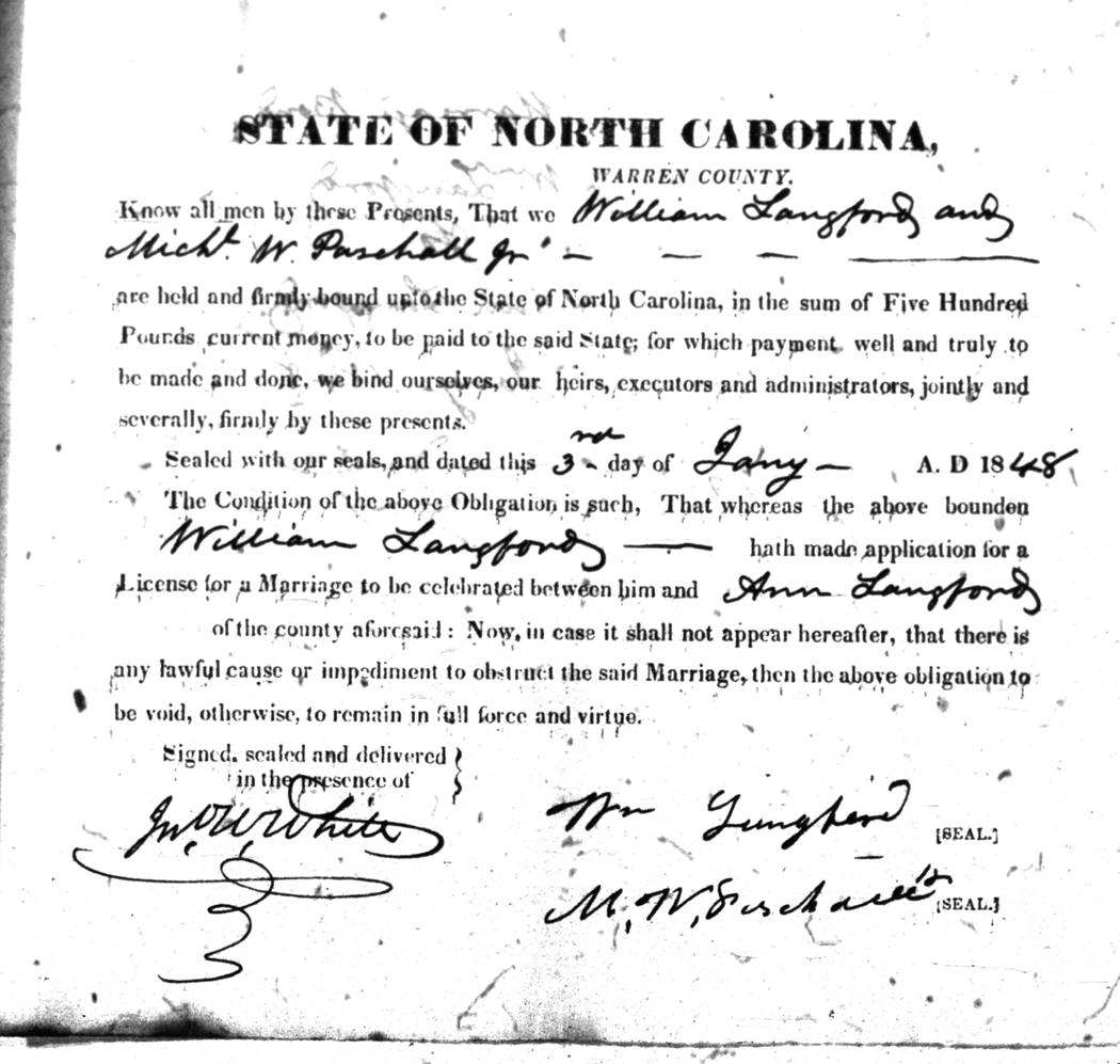 We should all thank Ginger Christmas-Beattie for all the work that has gone into getting the marriage bond images online. Not only has she done them once but twice after she found a way to tease the process to get a clearer image from the old microfilm. This is something I could not have done in years but Ginger has always been able to do more in less time than anyone I know. |