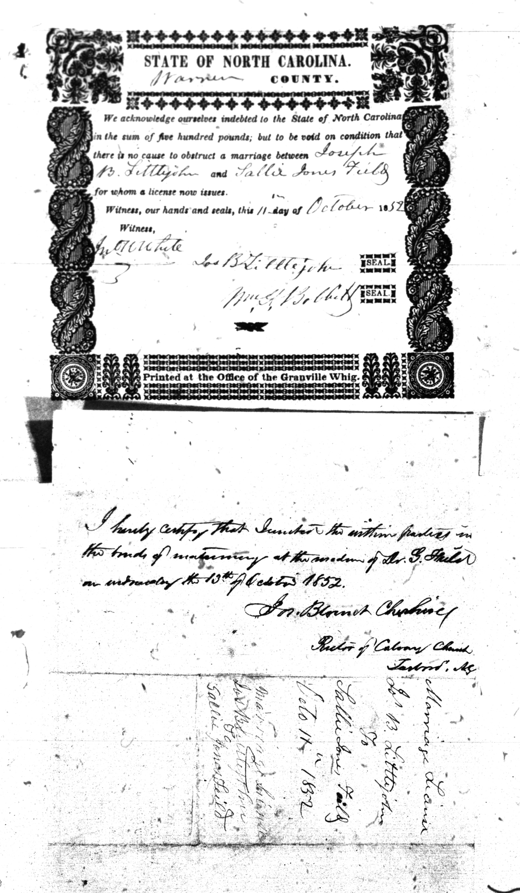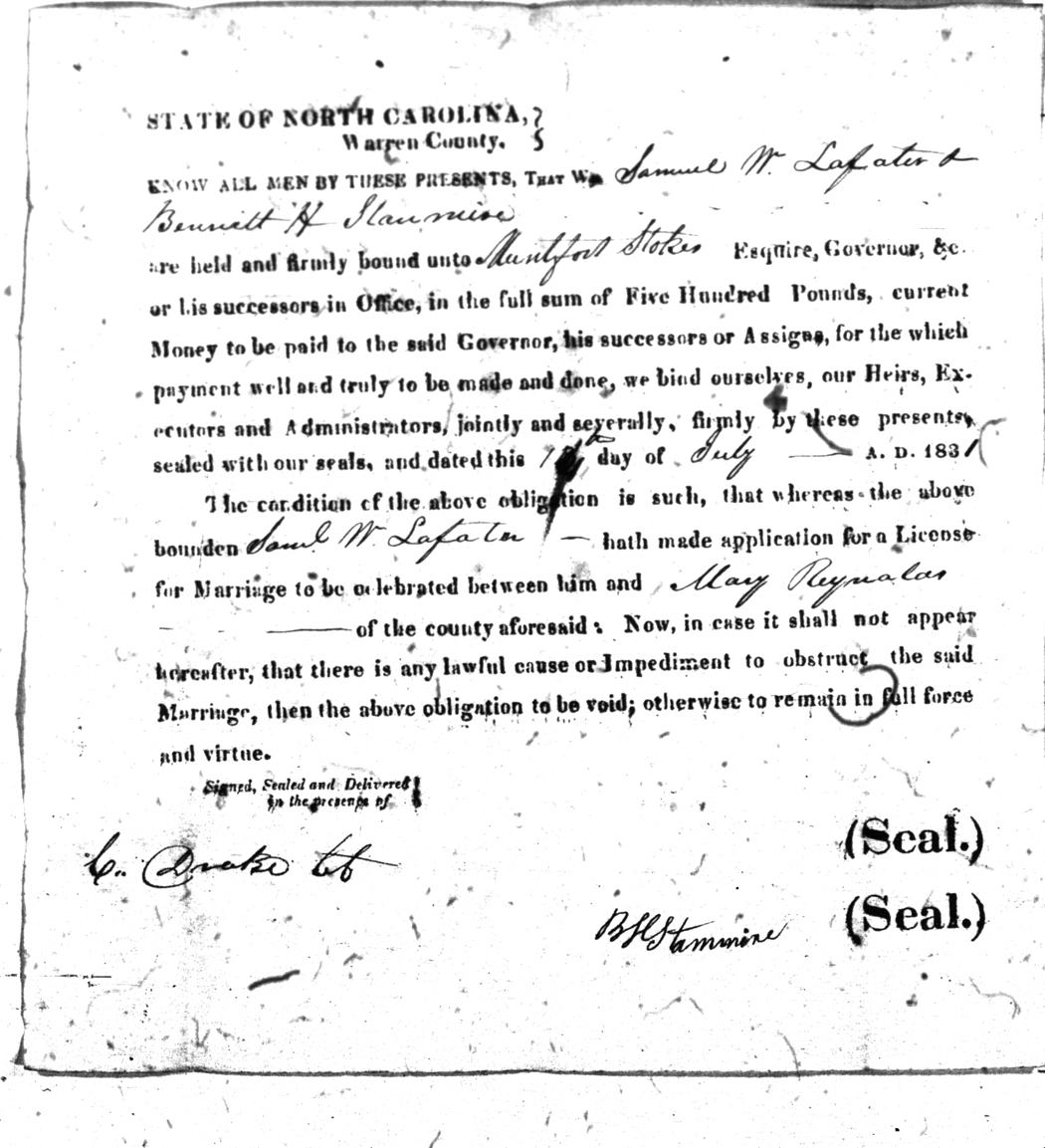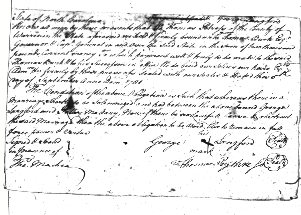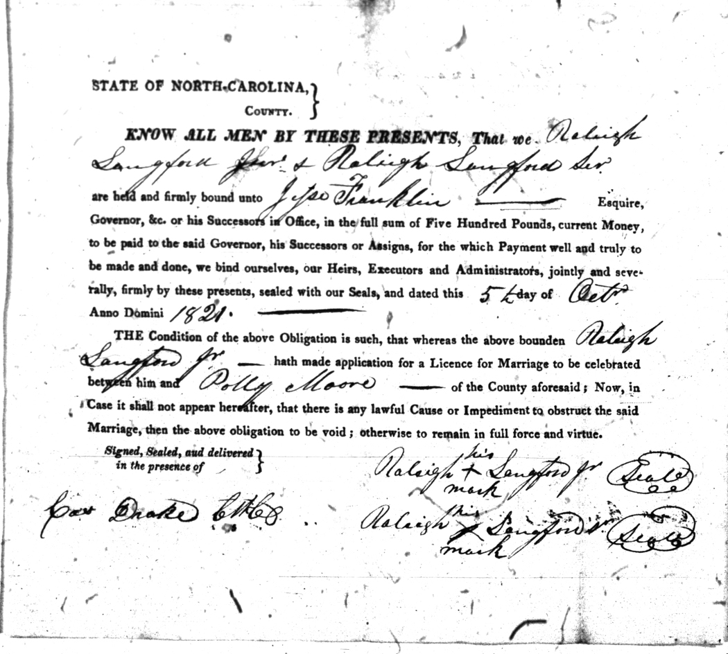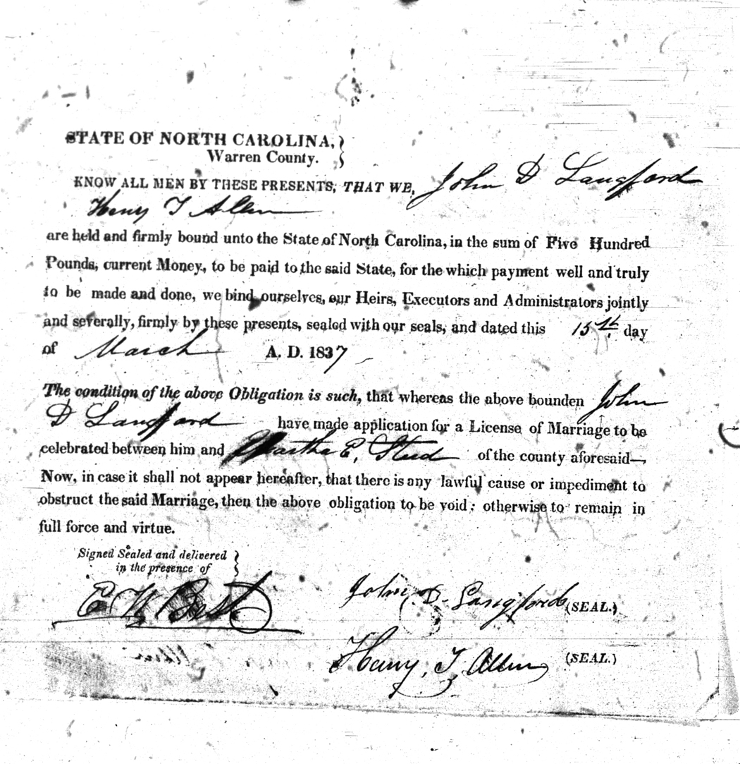 We should all thank Ginger Christmas-Beattie for all the work that has gone into getting the marriage bond images online. Not only has she done them once but twice after she found a way to tease the process to get a clearer image from the old microfilm. This is something I could not have done in years but Ginger has always been able to do more in less time than anyone I know. |