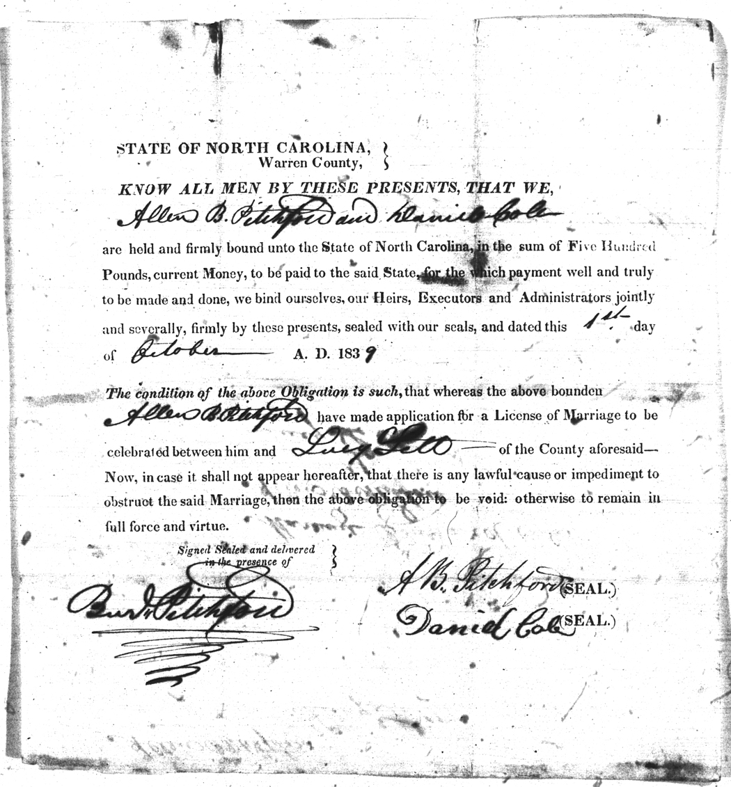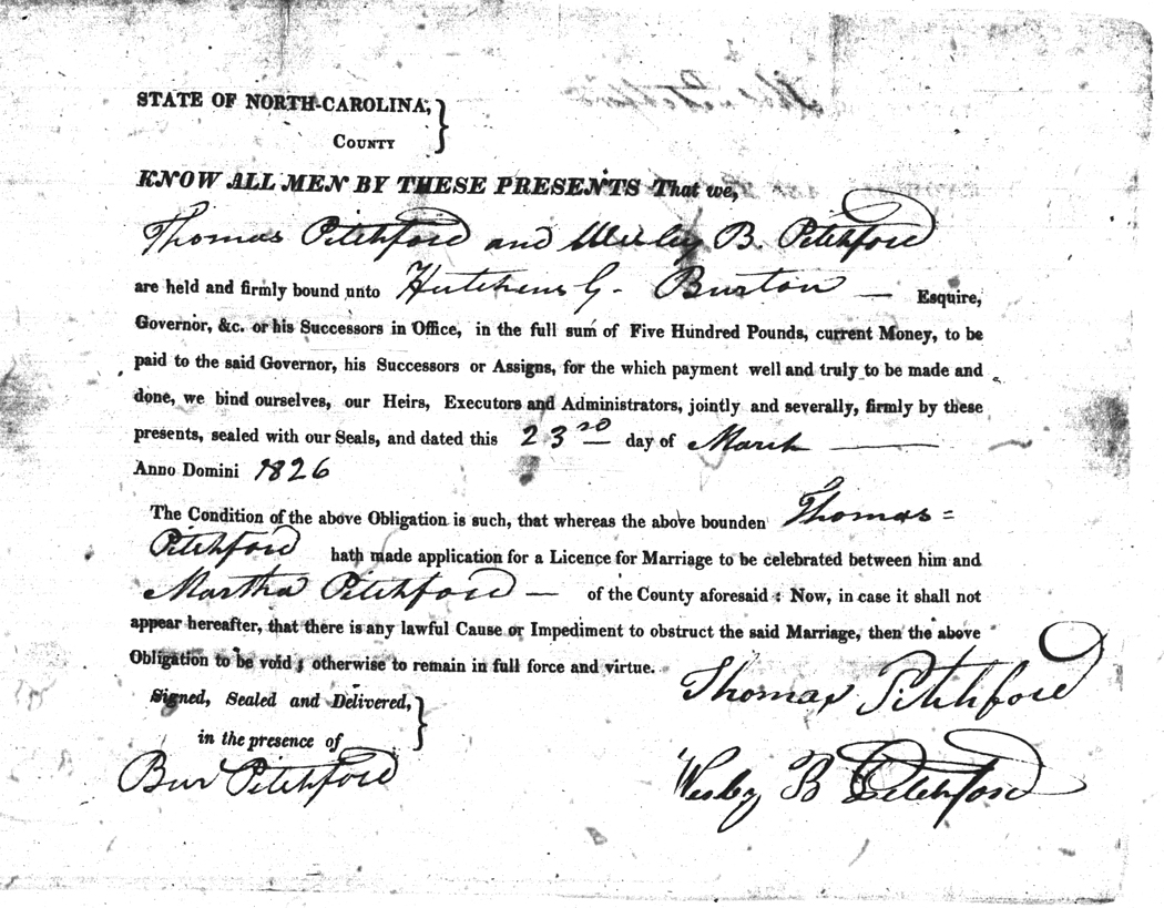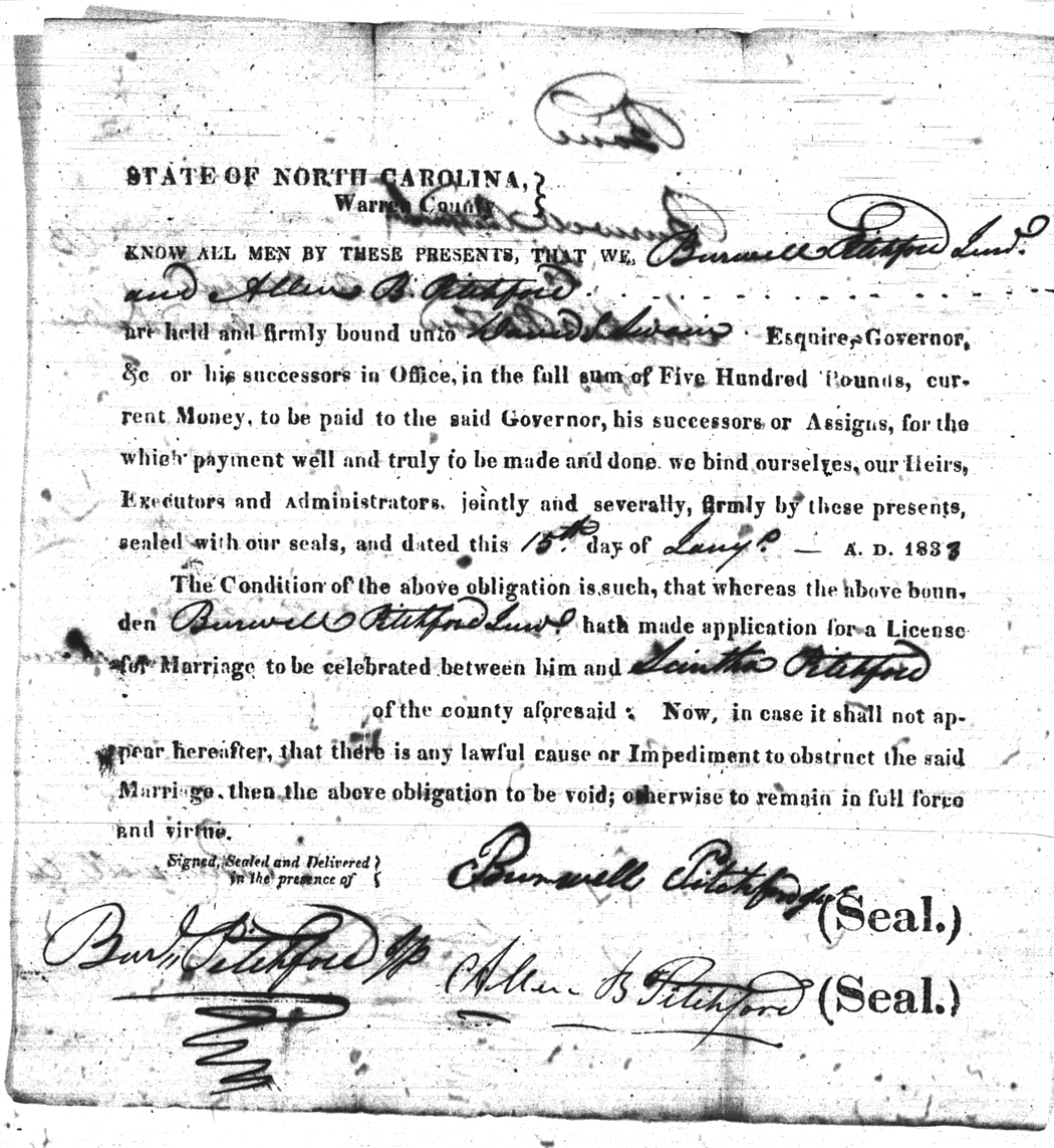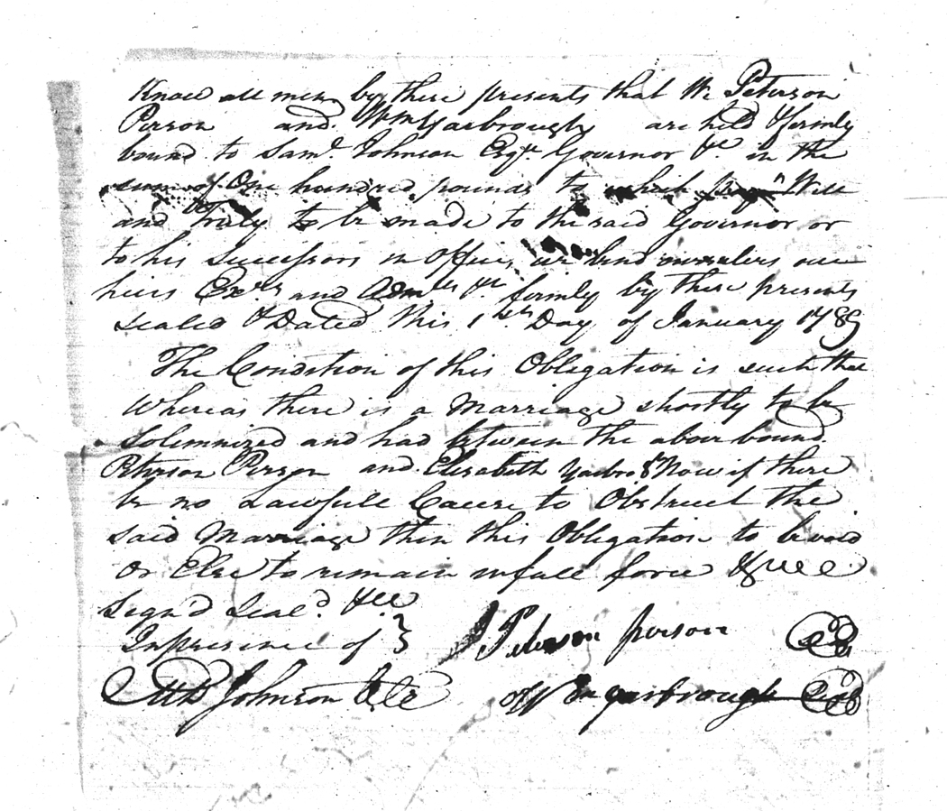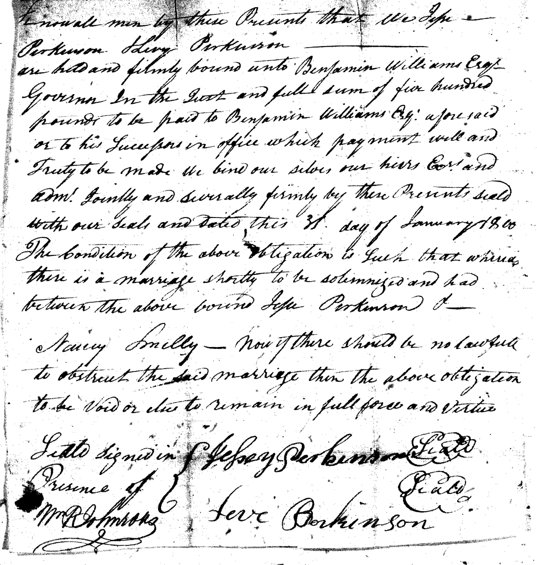 We should all thank Ginger Christmas-Beattie for all the work that has gone into getting the marriage bond images online. Not only has she done them once but twice after she found a way to tease the process to get a clearer image from the old microfilm. This is something I could not have done in years but Ginger has always been able to do more in less time than anyone I know. |