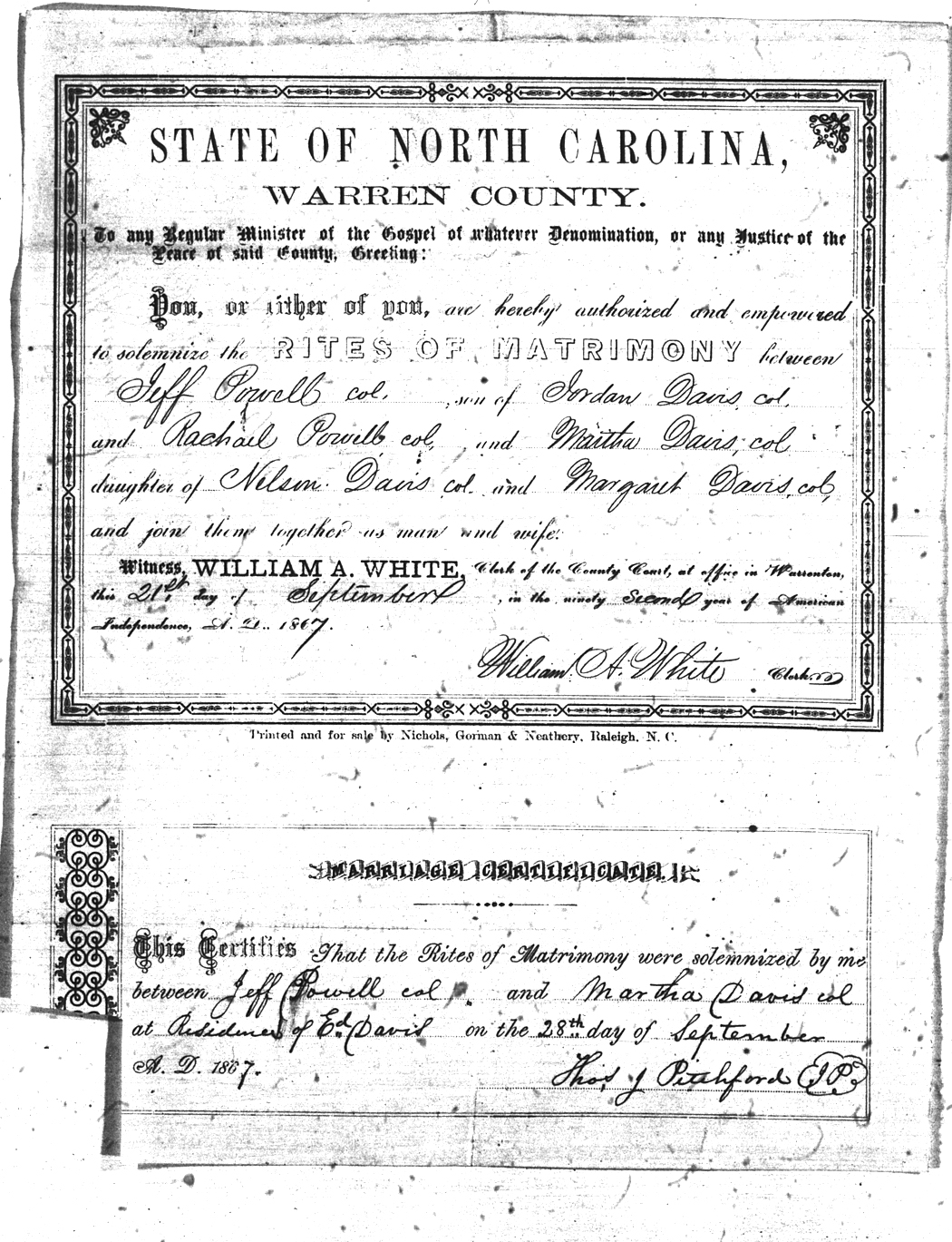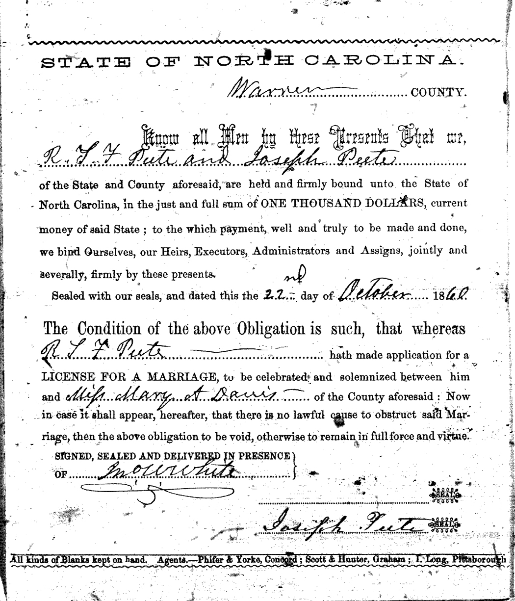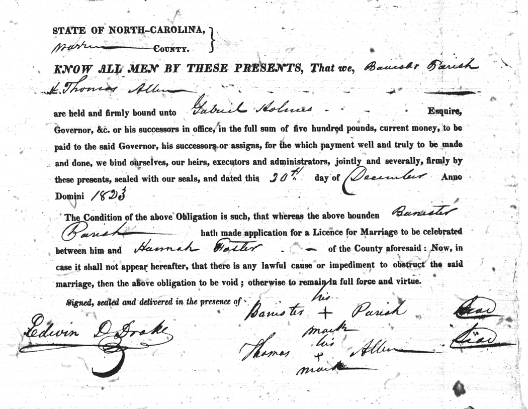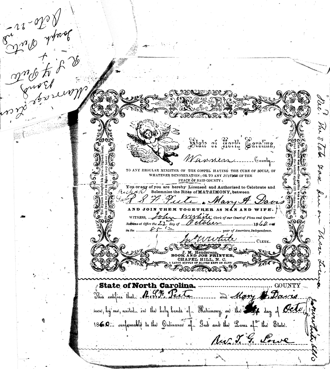 We should all thank Ginger Christmas-Beattie for all the work that has gone into getting the marriage bond images online. Not only has she done them once but twice after she found a way to tease the process to get a clearer image from the old microfilm. This is something I could not have done in years but Ginger has always been able to do more in less time than anyone I know. |