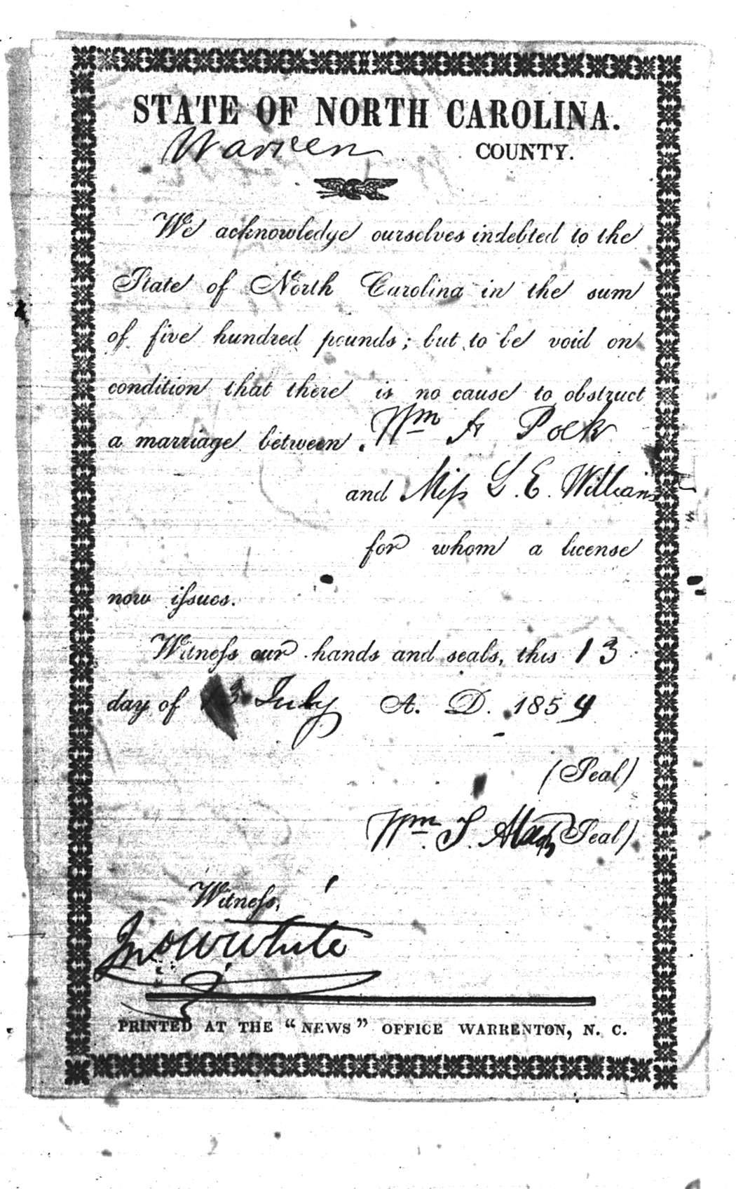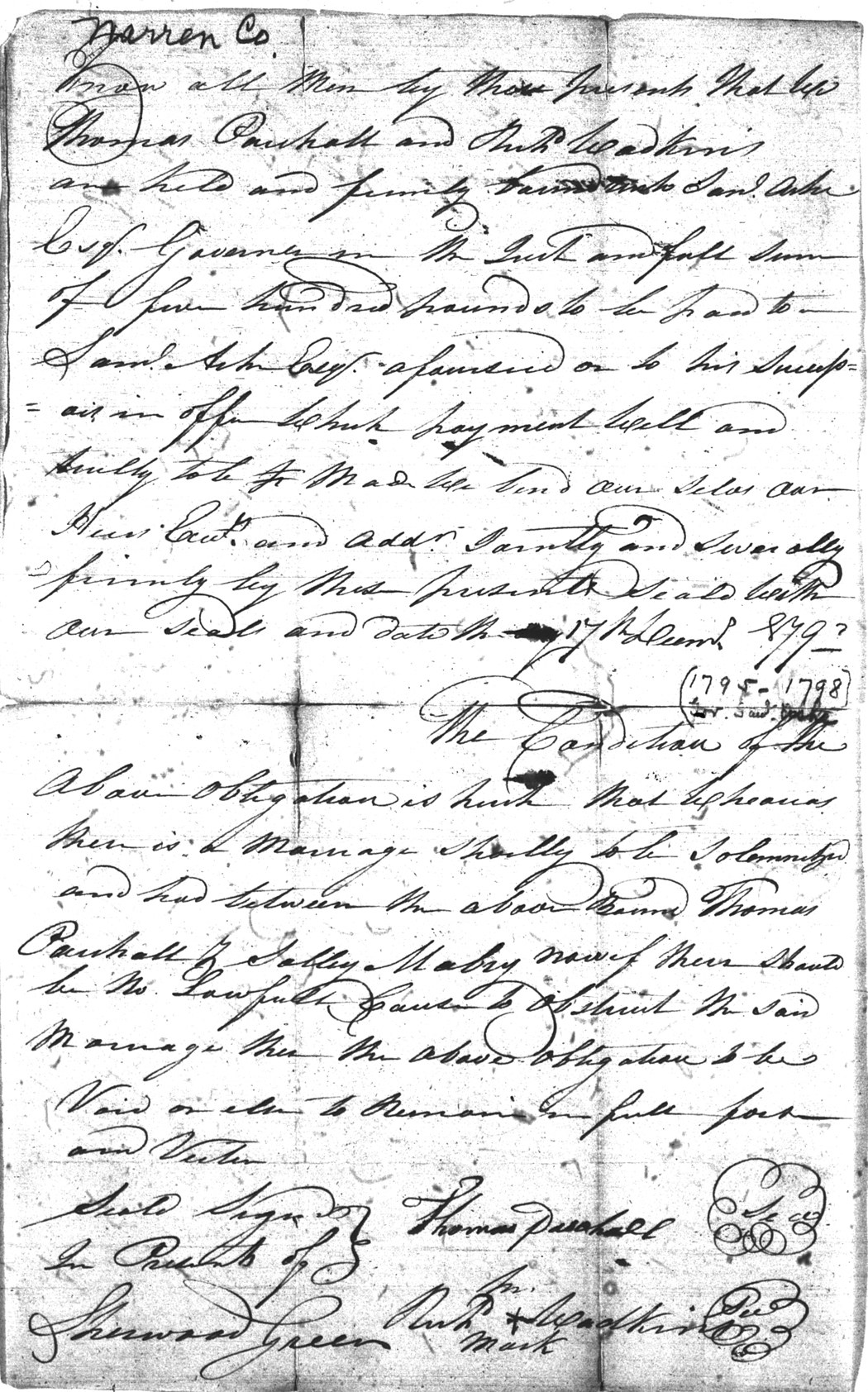 Warren County Marriage Bond Images 1779-1868 |