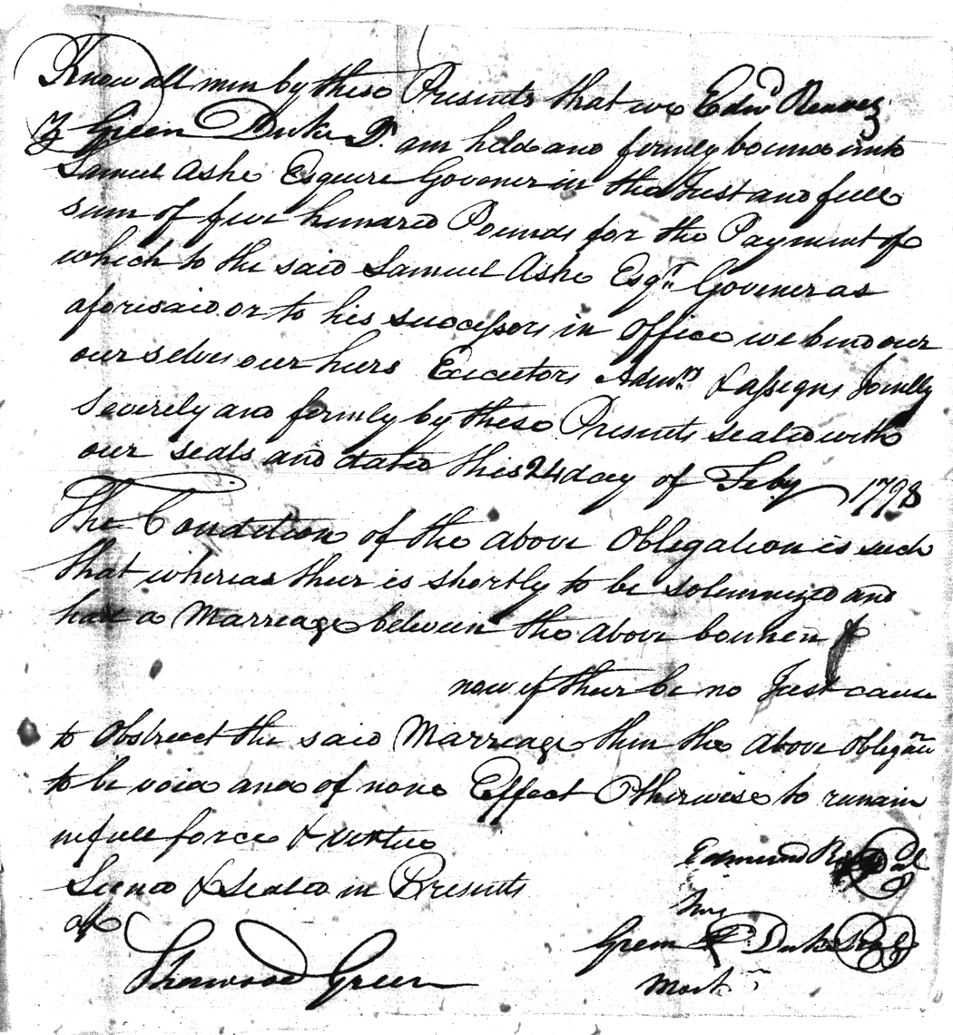 | Robertson | Jeremiah | Layhead | Peggey | 06 Feb 1797 | Z. Yancey Durham | White | |