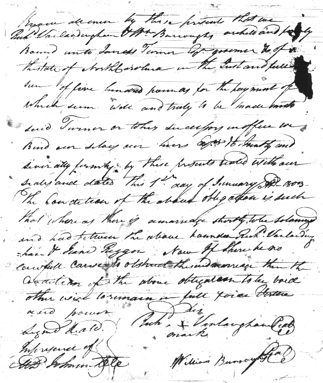| Vanlandingham | Richard | Riggan | Jane | 01 Jan 1803 | William Burroughs | White | |