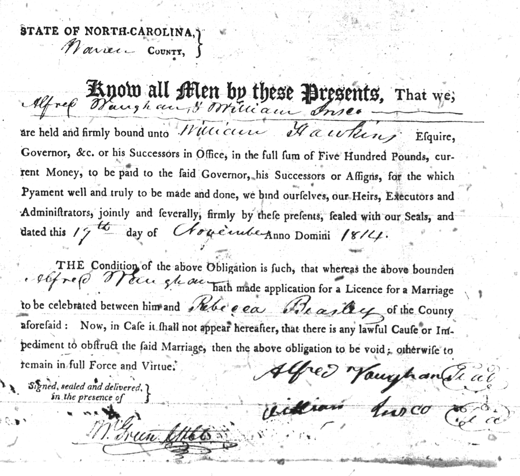 | Vaughan | Alfred | Beasley | Rebecca | 17 Nov 1814 | William Hawkins | White | |