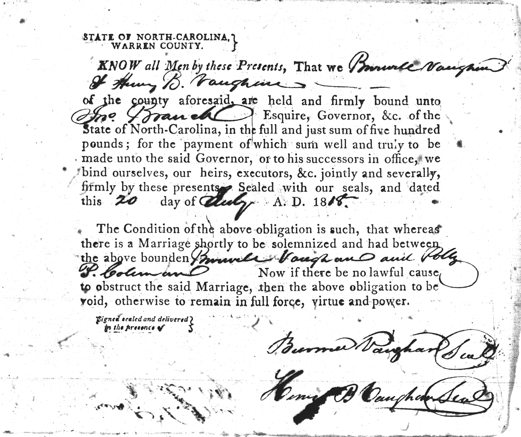 | Vaughan | Burwell | Coleman | Polly P. | 20 Jul 1818 | Henry B. Vaughan | White | |