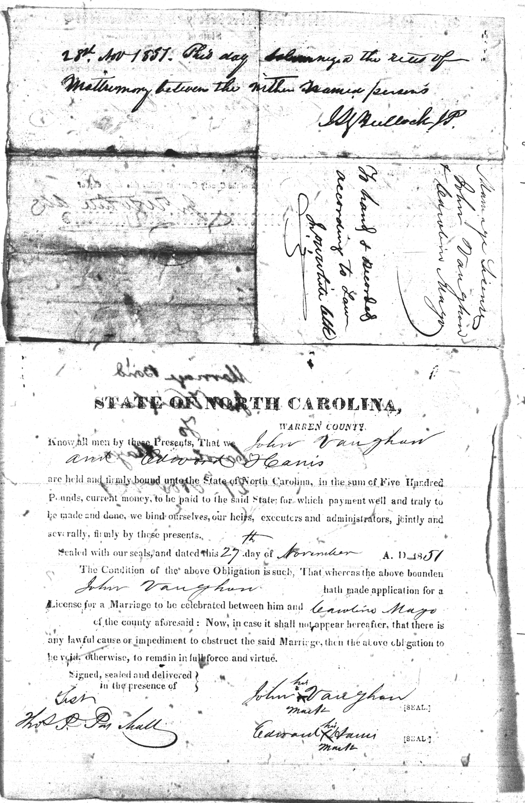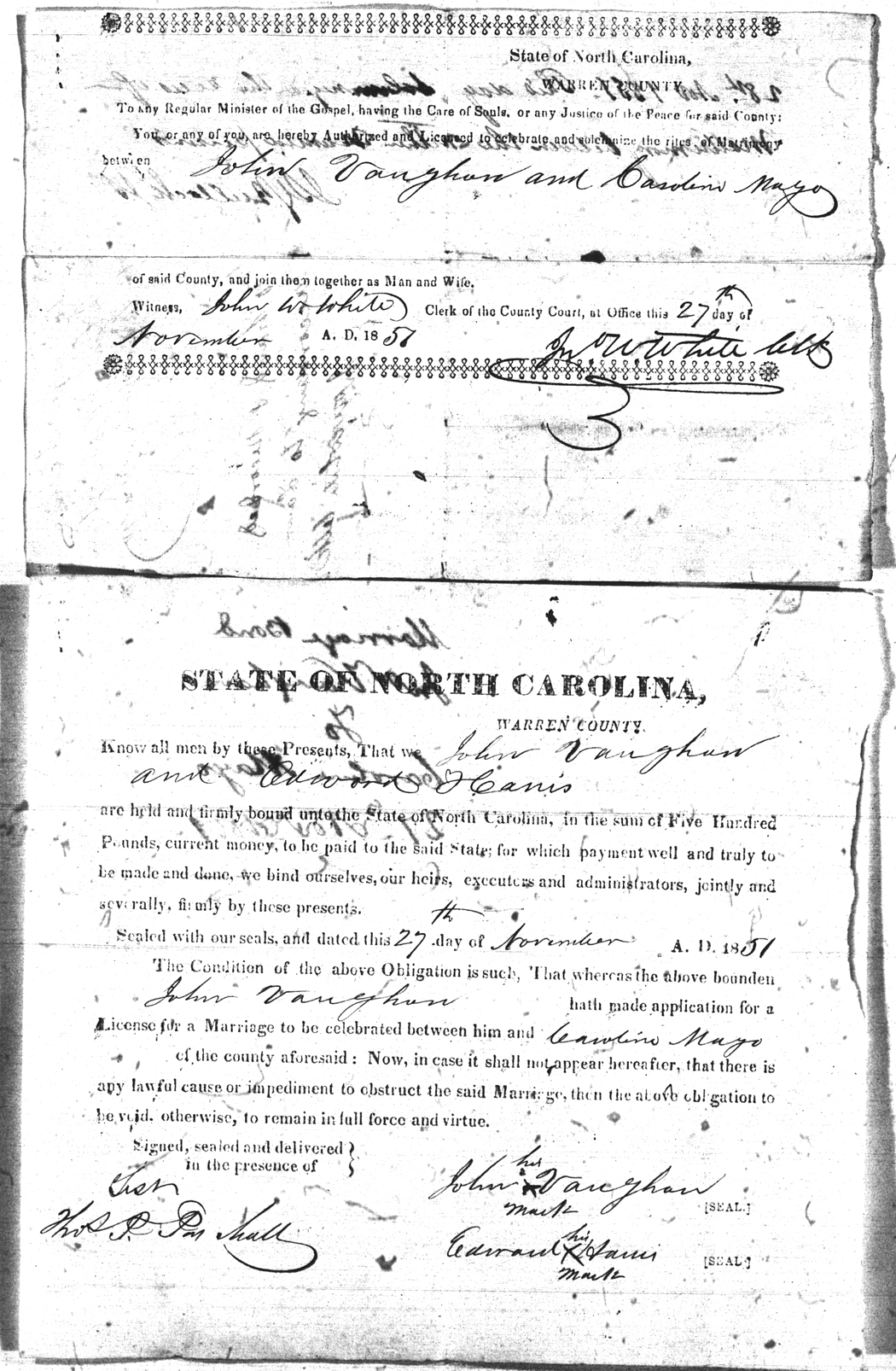 | Vaughan | John | Mayo | Carolina | 27 Nov 1851 | 27 Nov 1851 | Edward Harris | White |