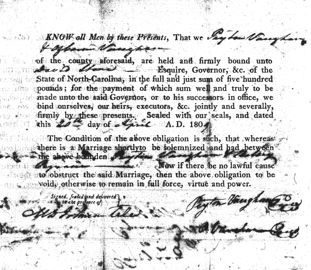 | Vaughan | Peyton | Pegram | Betsey | 20 Apr 1809 | Ozborn Vaughan | White | |