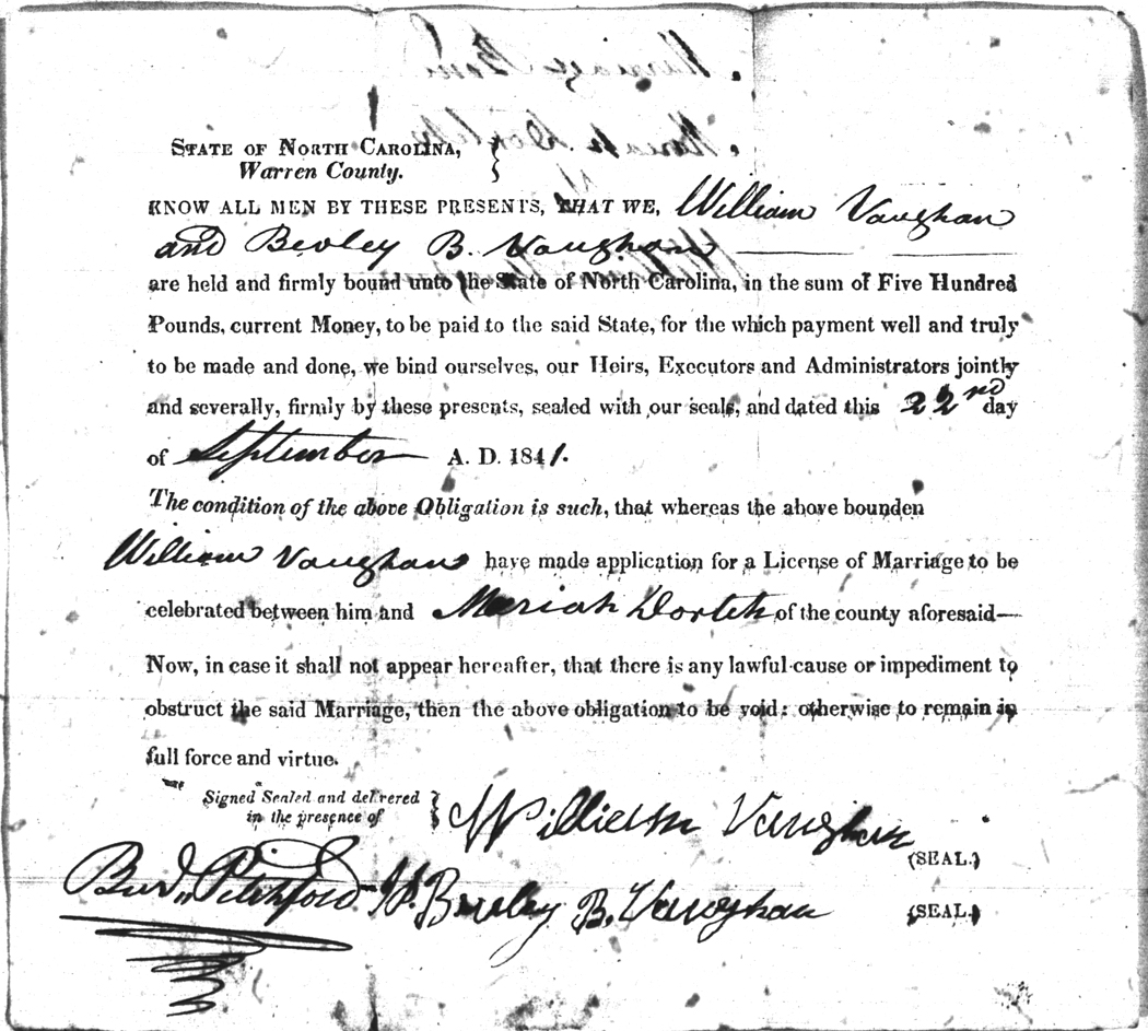 | Vaughan | William | Dortch | Mariah | 22 Sep 1841 | Neverly B. Vaughan | White | |