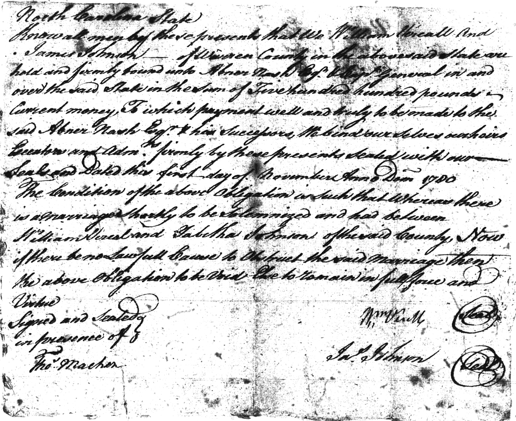 | Verell | William | Johnson | Tabitha | 01 Nov 1780 | James Johnson | White | |