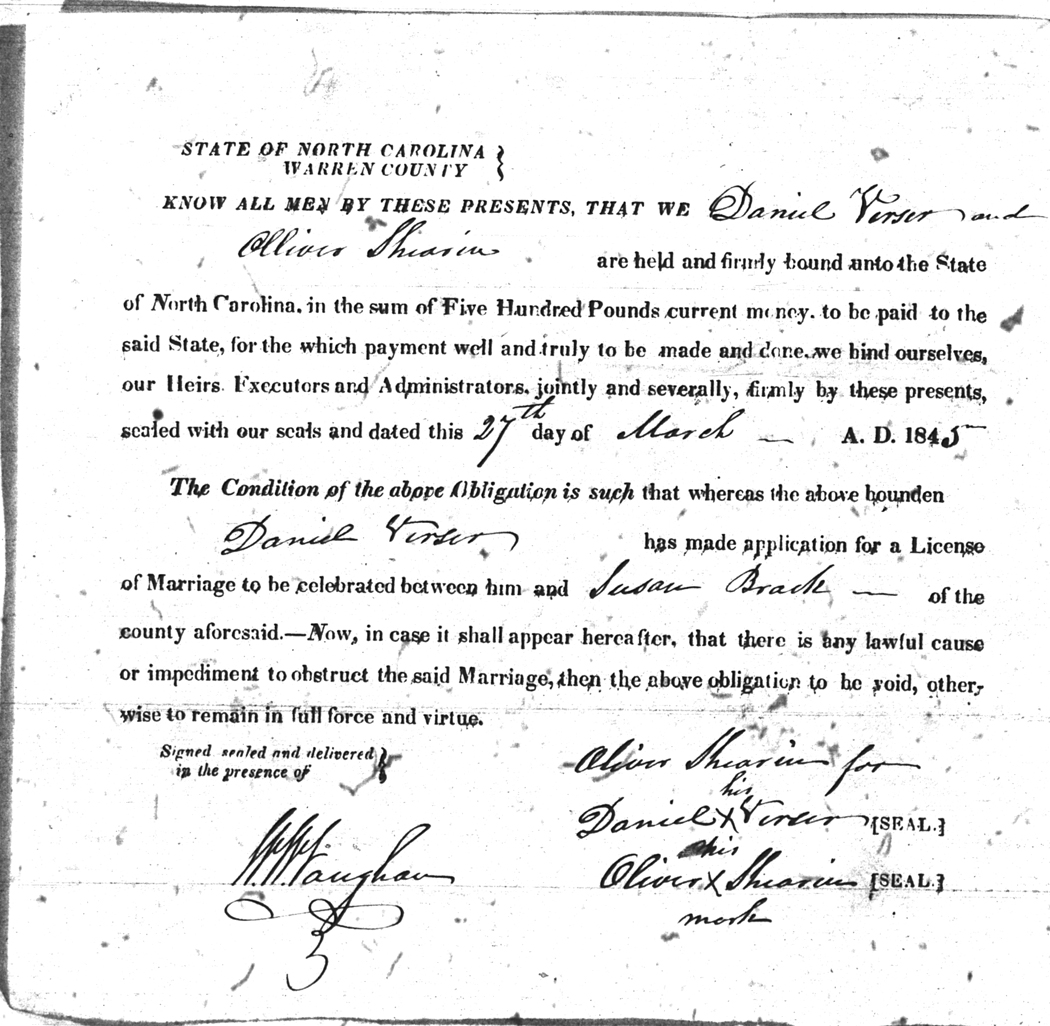 | Verser | Daniel | Brack | Susan | 27 Mar 1845 | Oliver Shearin | White | |