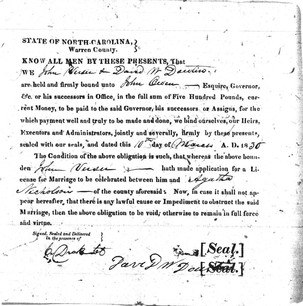 | Verser | John | Nicholson | Agatha | 10 Mar 1830 | David W. Dowtin | White | |