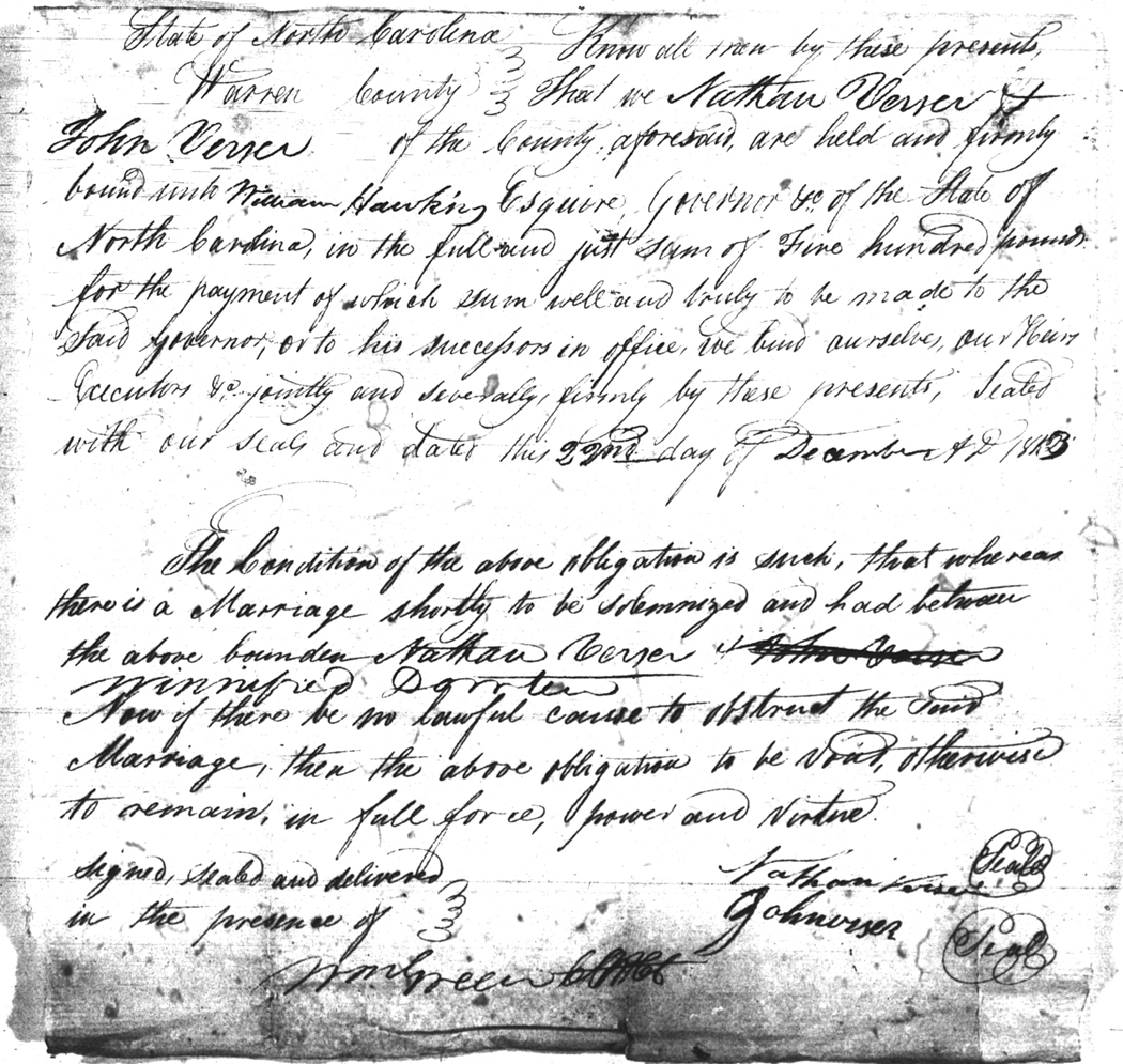 | Verser | Nathan | Dowten | Winnifred | 22 Dec 1813 | John Verser | White | |