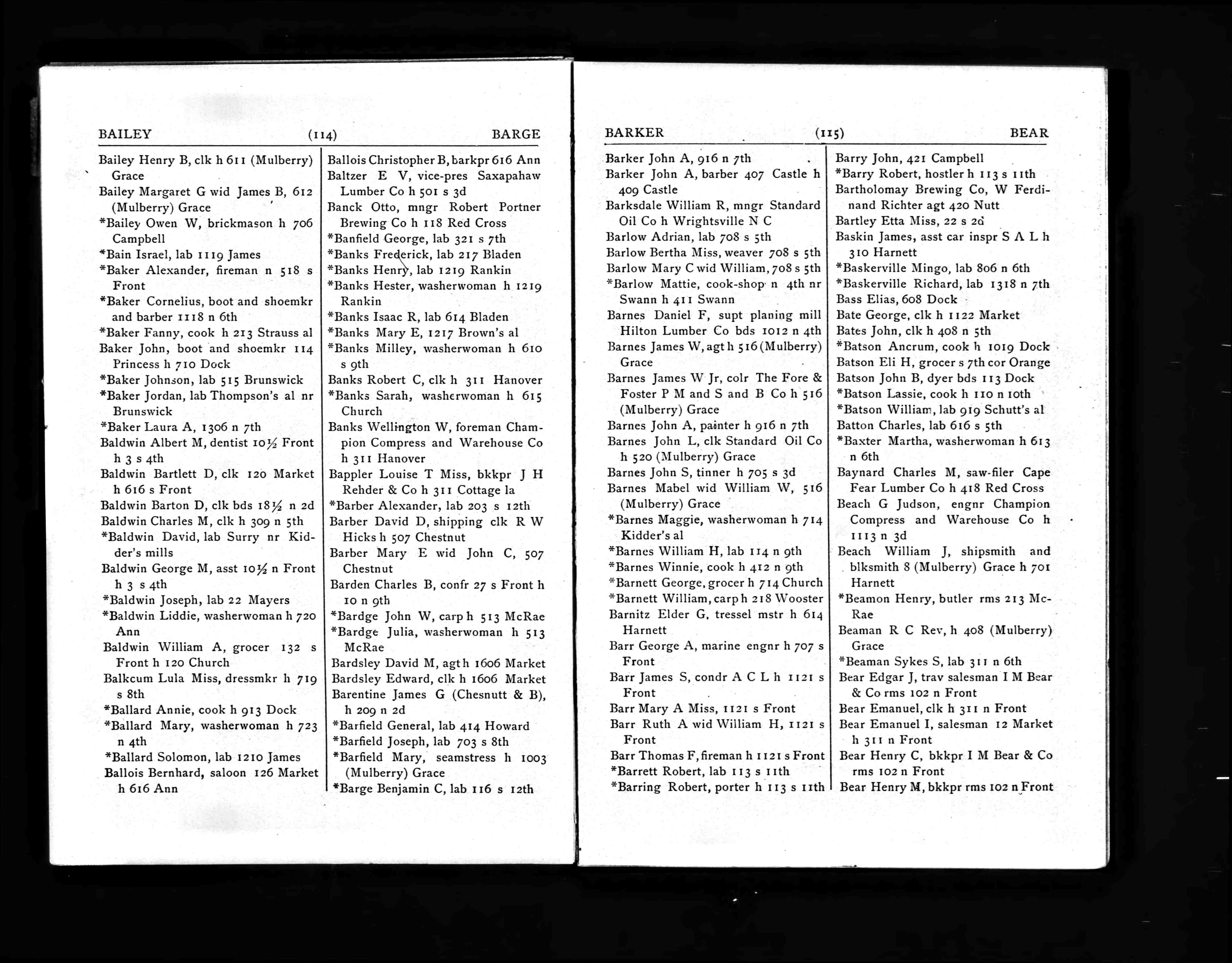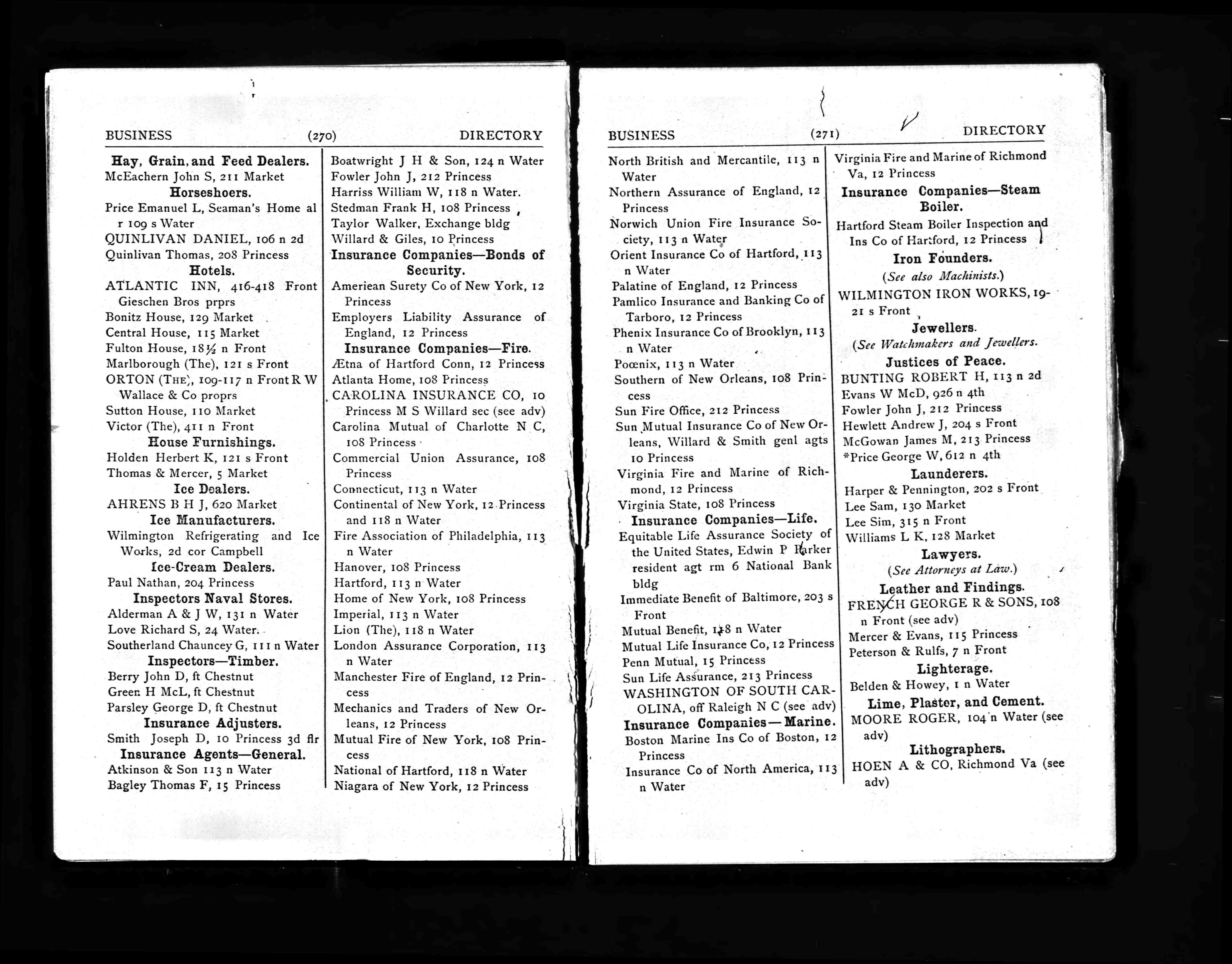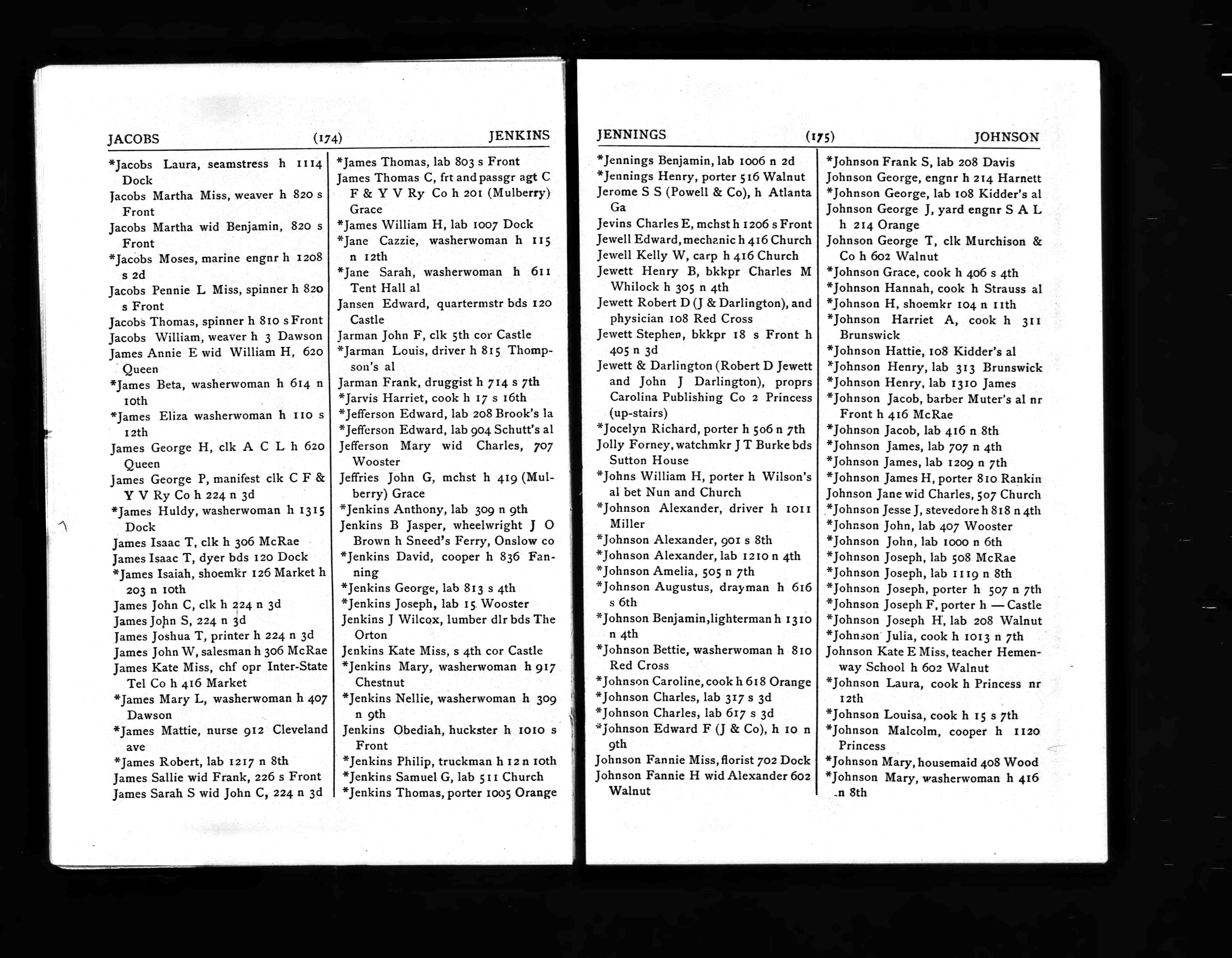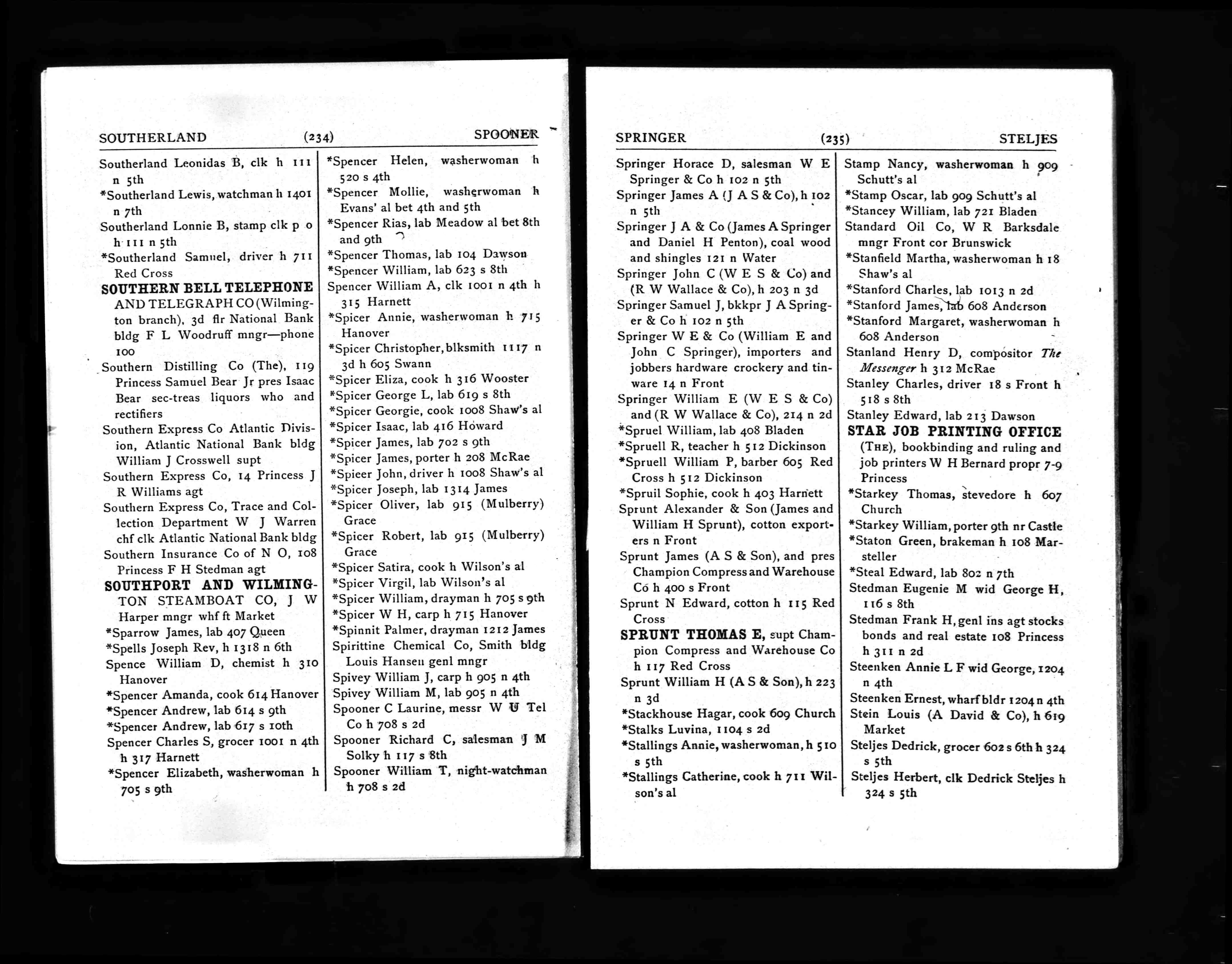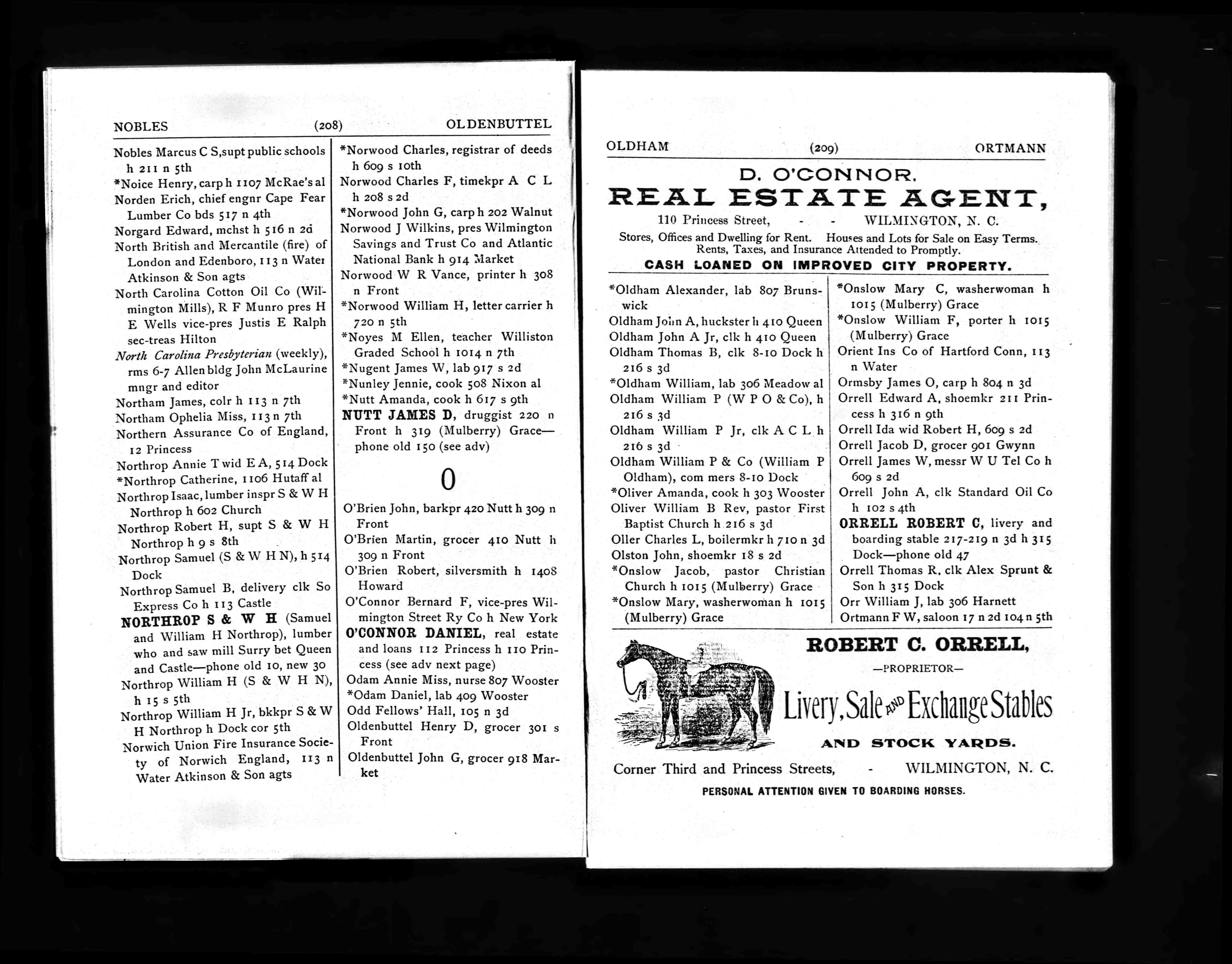 146 Ennett - Farrar 148 Farrell - Foster 150 Foster - Fuller 152 Fuller - Gaylord 154 Geams - Gore 156 Gore - Grier 158 Grier - Hall 160 Hall - Hanover 162 Hanscom - Hawes 164 Hawes - Herring 166 Herring - Hodges 168 Hodges - Howard 170 Howard - Humphrey 172 Humphrey - Jacobs 174 Jacobs - Johnson 176 Johnson - Jones 178 Jones - Kenan 180 Kendall - Koonce 182 Koonce - LeBoo 184 LeBoo - Litgen 186 Litgen - McCab 188 McCalister - McFarland 190 McFarland - McLaurin 192 McLaurine - MacKenzie 194 MacRae - Mask 196 Mason - Merrick 198 Merrick - Mitchell 200 Mitchell - Moore 202 Moore - Muller 204 Mumford - Neil 206 Neil - Nixon 208 Nobles - Ortmann 210 Ortmann - Pearsall 212 Pearsall - Pierce 214 Pierce - Prease 216 Prease - Reaves 218 Reaves - Richardson 220 Richardson - Robinson 222 Robinson - St James 224 St James - Schnibben 226 Schnibben - Shepard 228 Shepard - Skey 230 Skinner - Smith 232 Smith - Southerland 234 Southerland - Steljes 266 Steljes - Suggs 238 Suggs - Taylor 240 Taylor - Thorburn 242 Thorburn - Tyler 244 Tyler - Wade 246 Wade - Waters 248 Watrous - Wheeler 250 Wheeler - Willard 252 Willard - Williams 254 Williams - Wilmington 256 Wilson - Worth 258 Wortham - Young 260 Young - Zoeller Business Directory 261 Advertising Companies - Barbers 262 Barbers - Chemical Companies 264 China Decorators and Painters - Dressmakers 266 Dressmakers - Grocers 268 Grocers - Hatters 270 Hay, Grain and Feed Dealers - Lithographers 272 Livery Sale and Exchange Stables - Painters: Carriage 274 Painters: House and Sign - Saloons 276 Saloons - Wood Dealers 286 advertisements 287 advertisements |