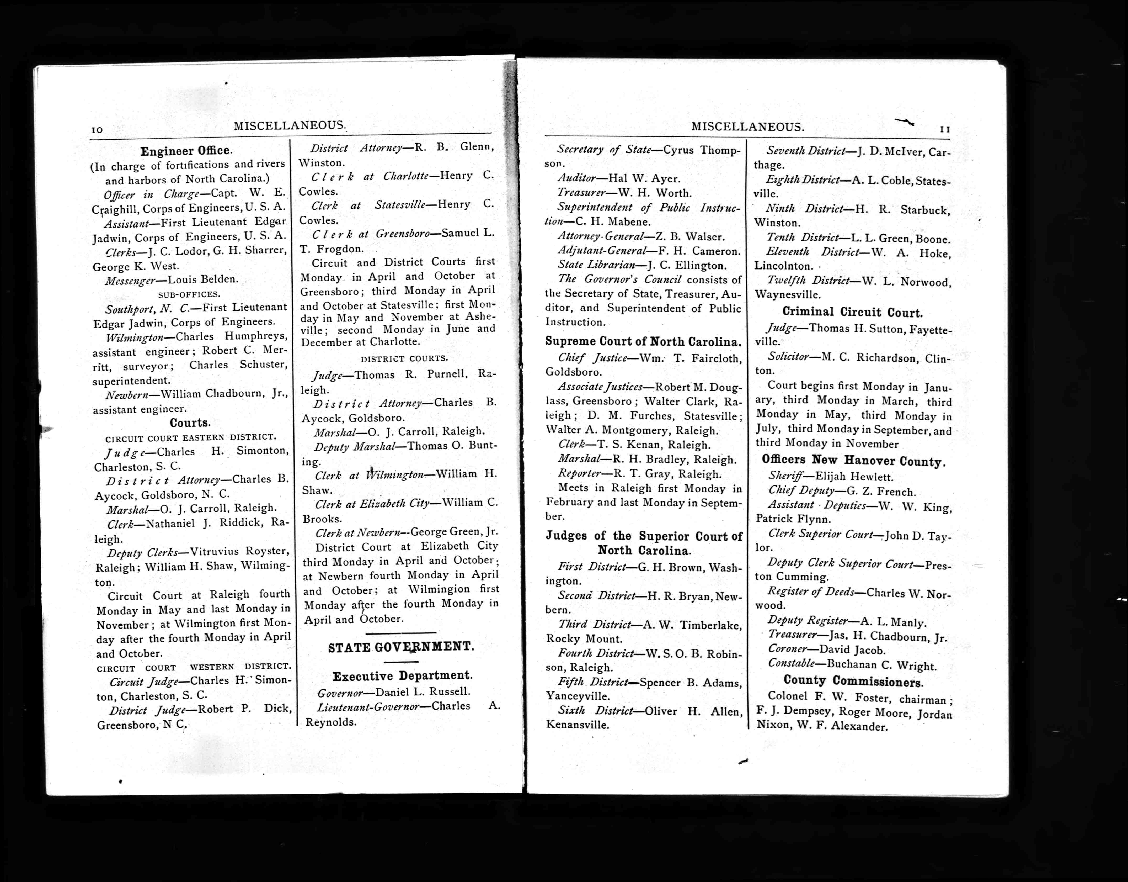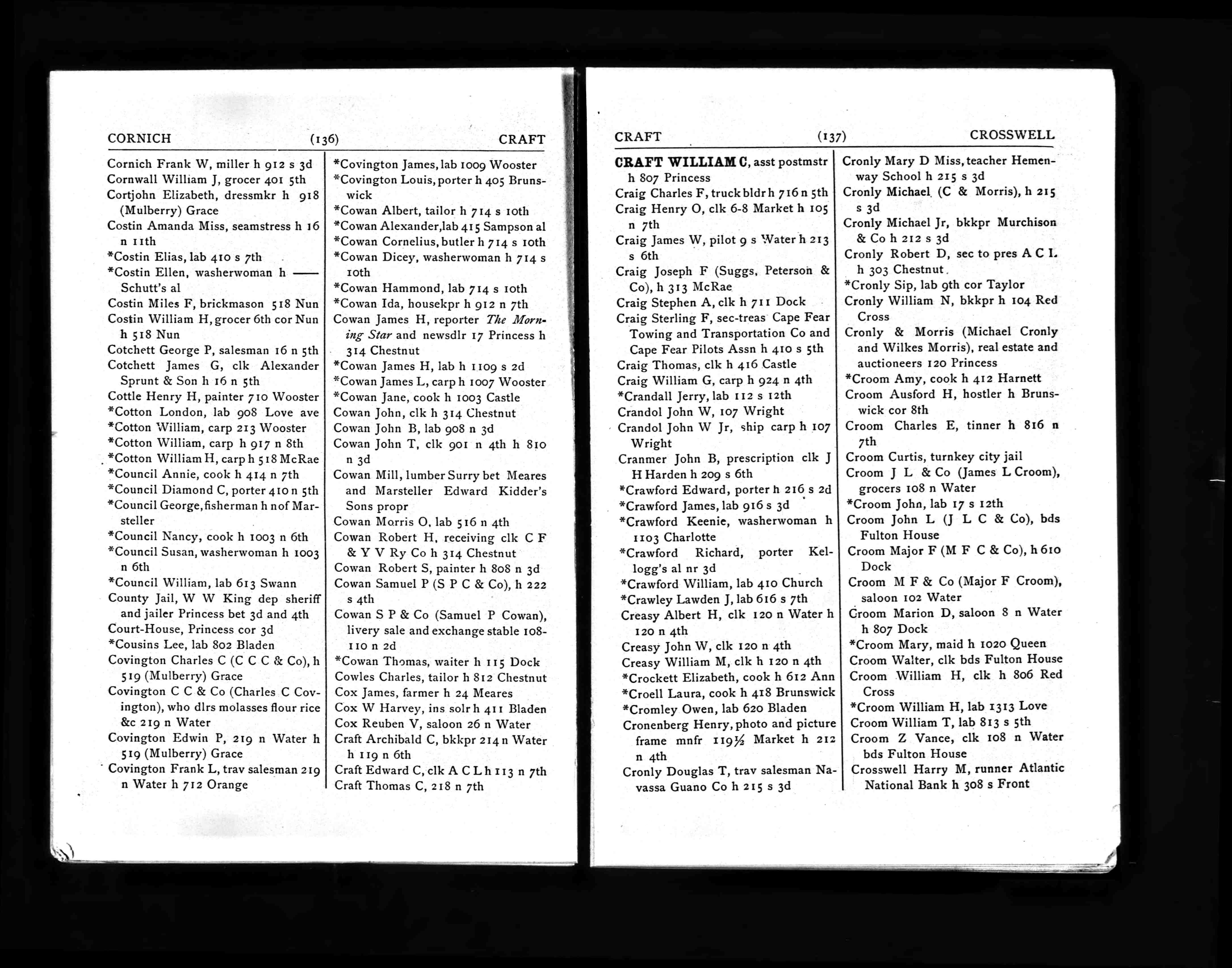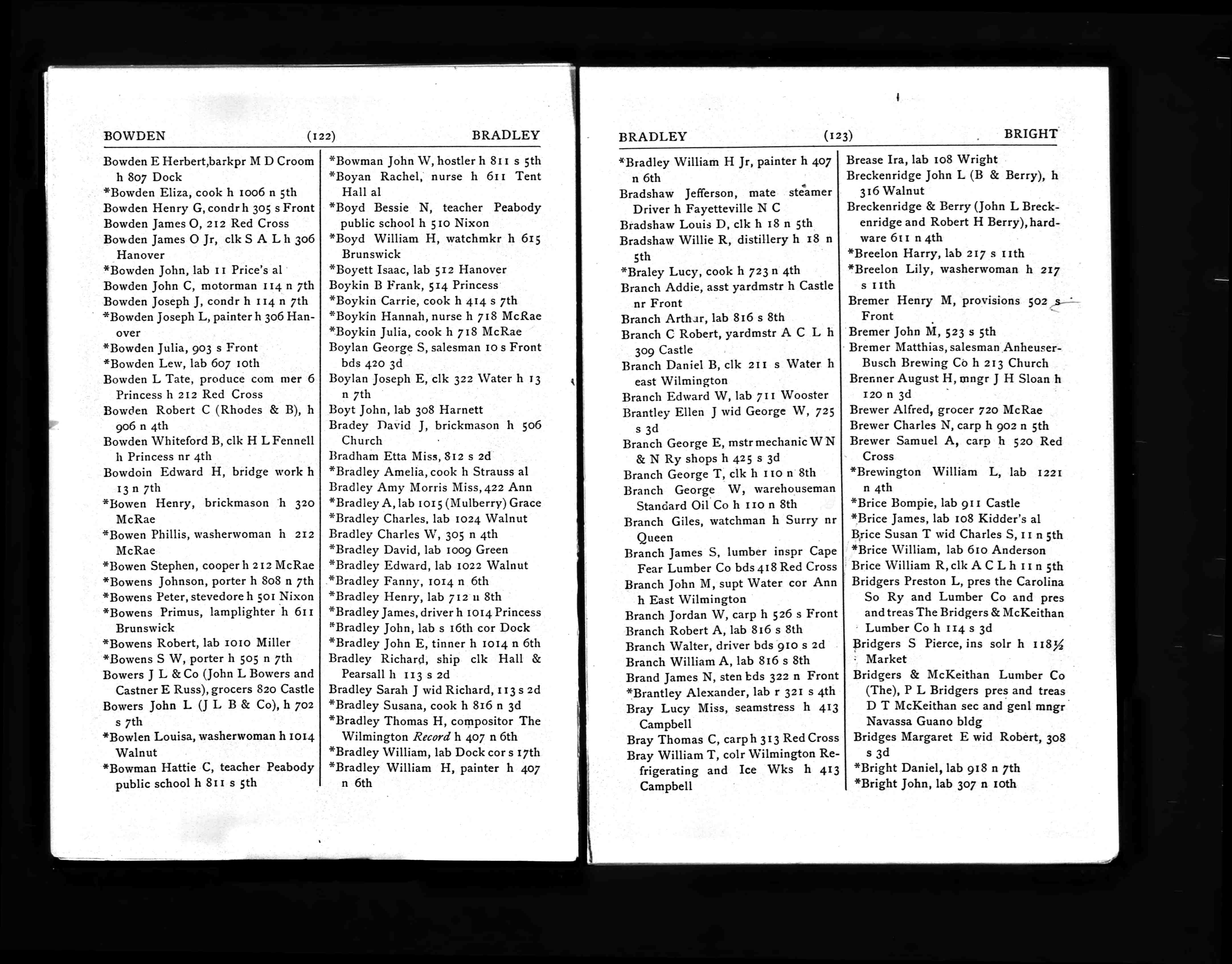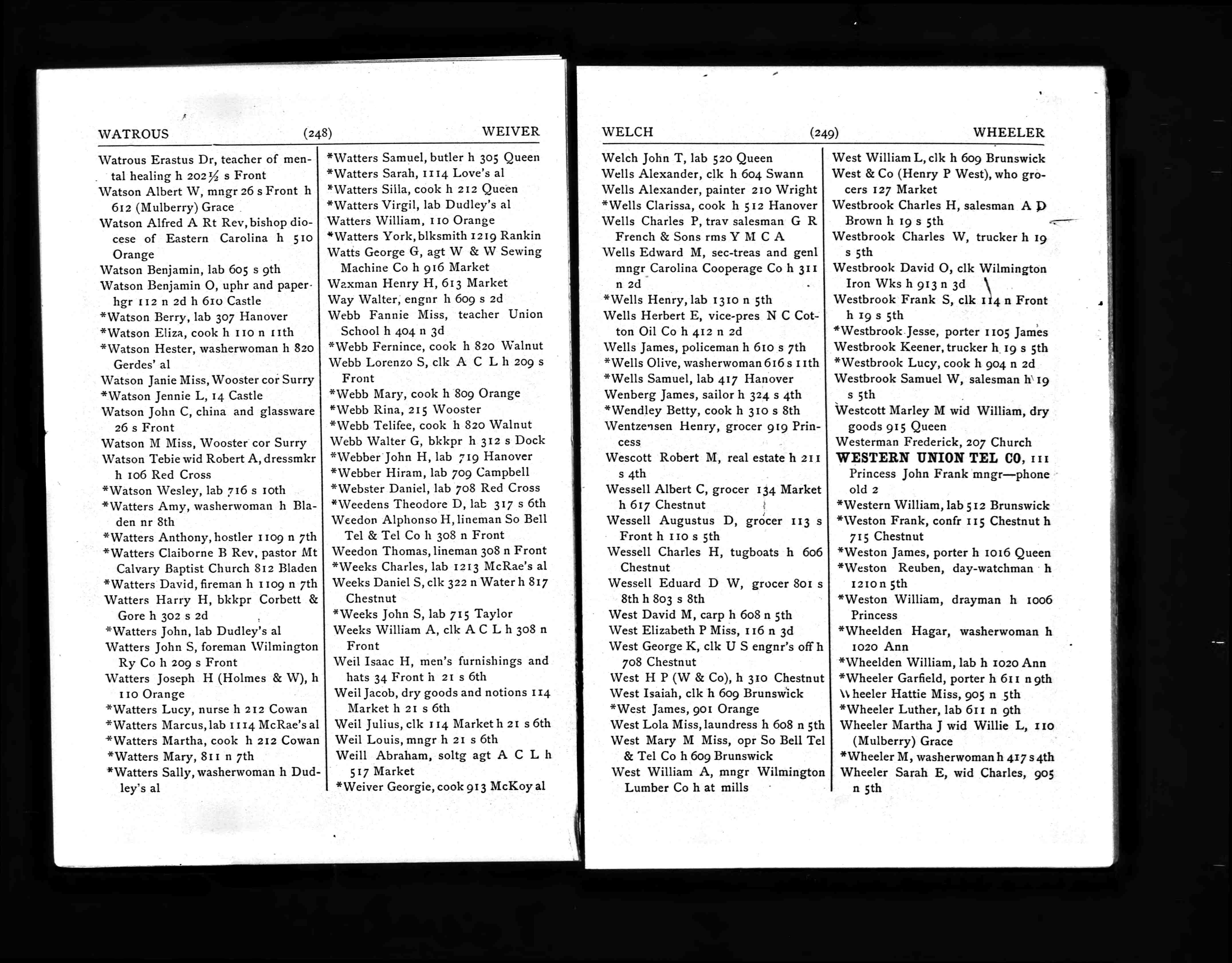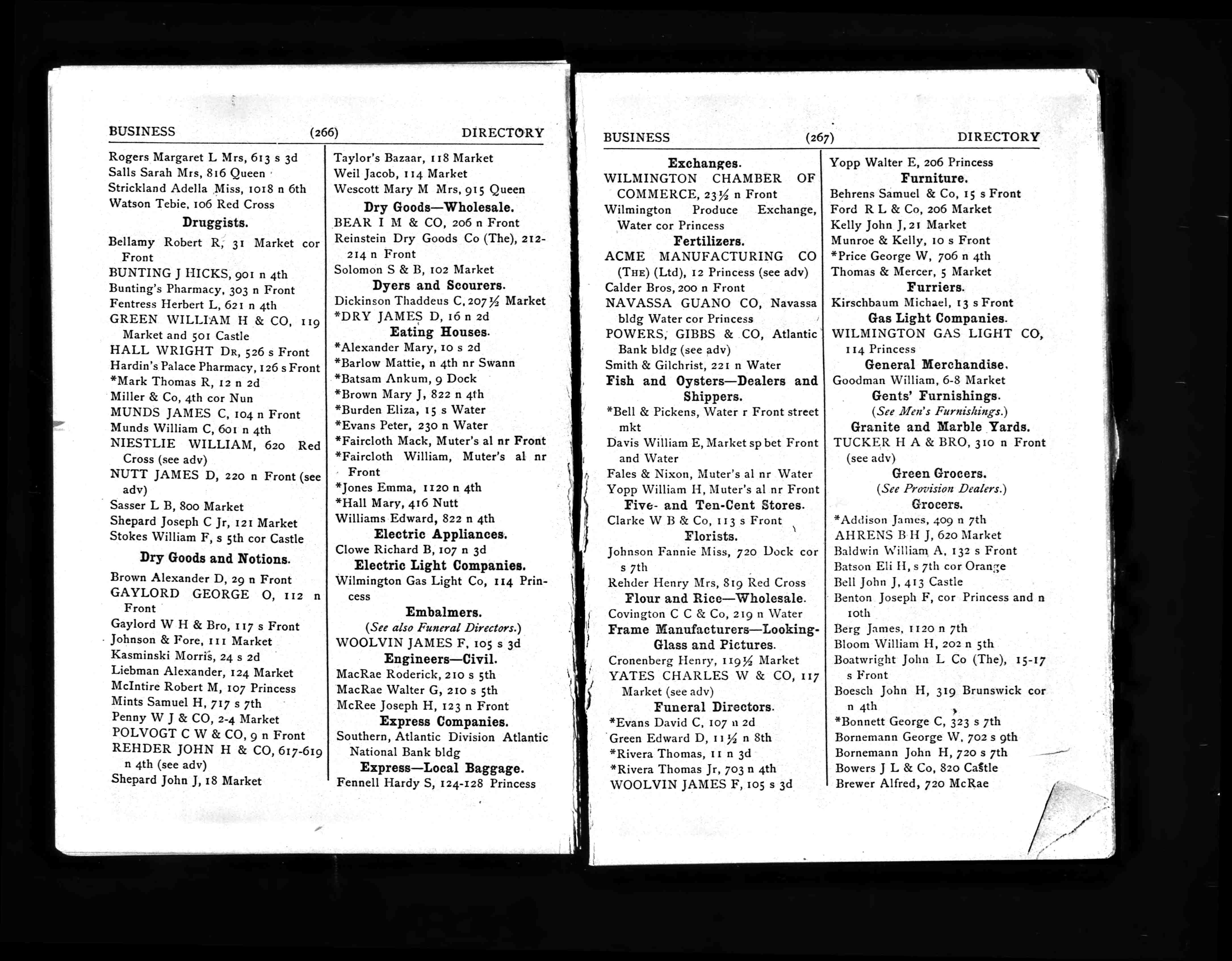 146 Ennett - Farrar 148 Farrell - Foster 150 Foster - Fuller 152 Fuller - Gaylord 154 Geams - Gore 156 Gore - Grier 158 Grier - Hall 160 Hall - Hanover 162 Hanscom - Hawes 164 Hawes - Herring 166 Herring - Hodges 168 Hodges - Howard 170 Howard - Humphrey 172 Humphrey - Jacobs 174 Jacobs - Johnson 176 Johnson - Jones 178 Jones - Kenan 180 Kendall - Koonce 182 Koonce - LeBoo 184 LeBoo - Litgen 186 Litgen - McCab 188 McCalister - McFarland 190 McFarland - McLaurin 192 McLaurine - MacKenzie 194 MacRae - Mask 196 Mason - Merrick 198 Merrick - Mitchell 200 Mitchell - Moore 202 Moore - Muller 204 Mumford - Neil 206 Neil - Nixon 208 Nobles - Ortmann 210 Ortmann - Pearsall 212 Pearsall - Pierce 214 Pierce - Prease 216 Prease - Reaves 218 Reaves - Richardson 220 Richardson - Robinson 222 Robinson - St James 224 St James - Schnibben 226 Schnibben - Shepard 228 Shepard - Skey 230 Skinner - Smith 232 Smith - Southerland 234 Southerland - Steljes 266 Steljes - Suggs 238 Suggs - Taylor 240 Taylor - Thorburn 242 Thorburn - Tyler 244 Tyler - Wade 246 Wade - Waters 248 Watrous - Wheeler 250 Wheeler - Willard 252 Willard - Williams 254 Williams - Wilmington 256 Wilson - Worth 258 Wortham - Young 260 Young - Zoeller Business Directory 261 Advertising Companies - Barbers 262 Barbers - Chemical Companies 264 China Decorators and Painters - Dressmakers 266 Dressmakers - Grocers 268 Grocers - Hatters 270 Hay, Grain and Feed Dealers - Lithographers 272 Livery Sale and Exchange Stables - Painters: Carriage 274 Painters: House and Sign - Saloons 276 Saloons - Wood Dealers 286 advertisements 287 advertisements |