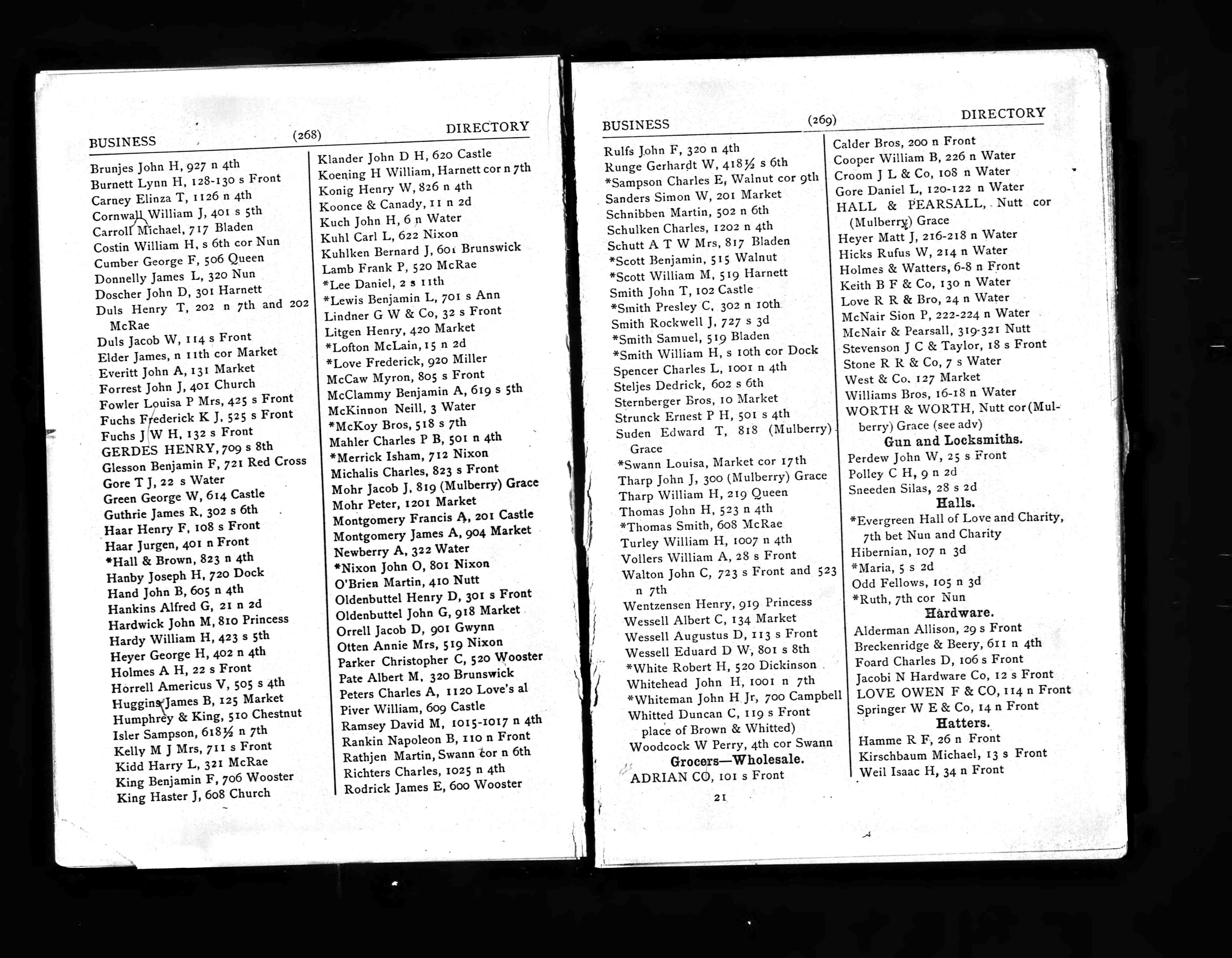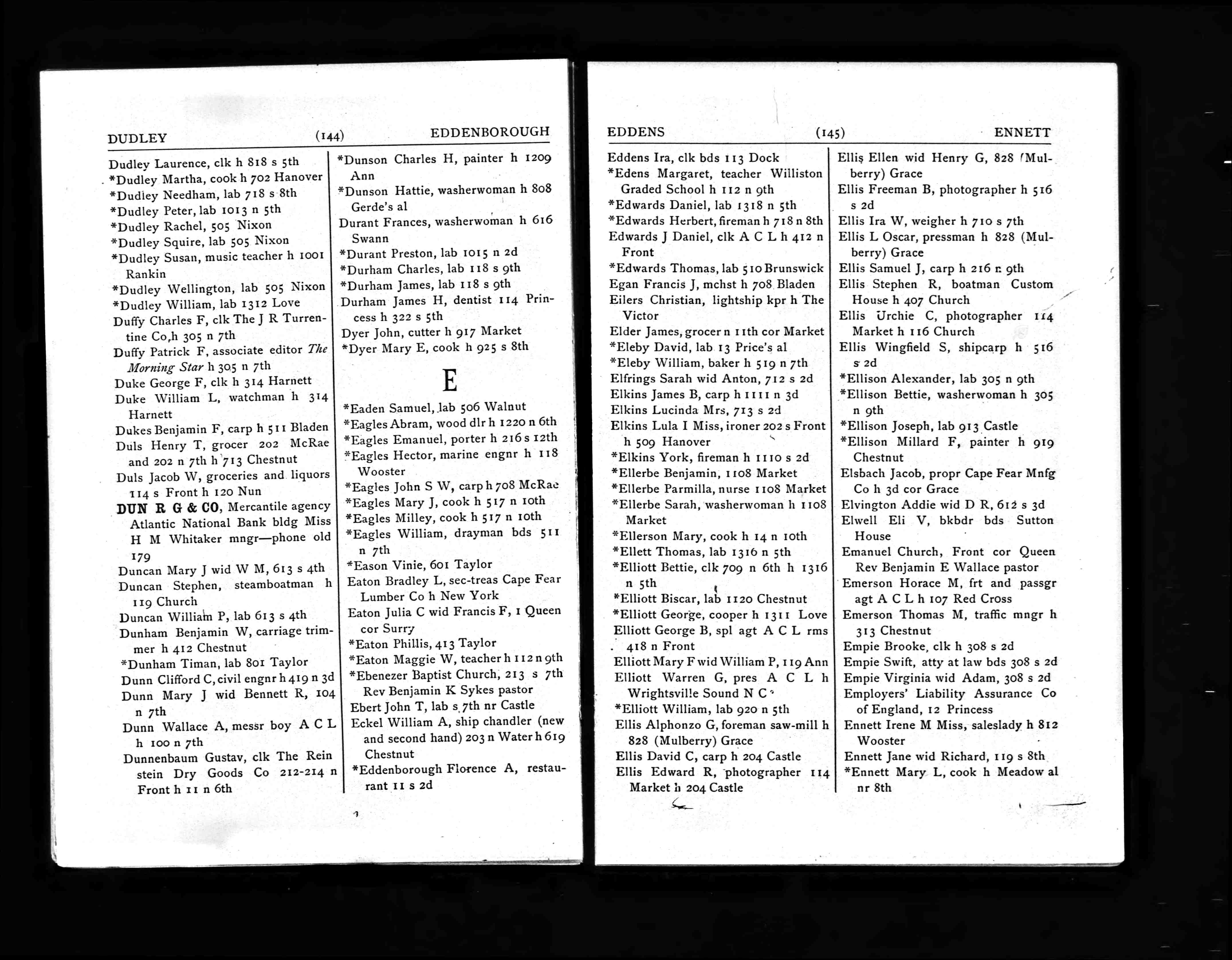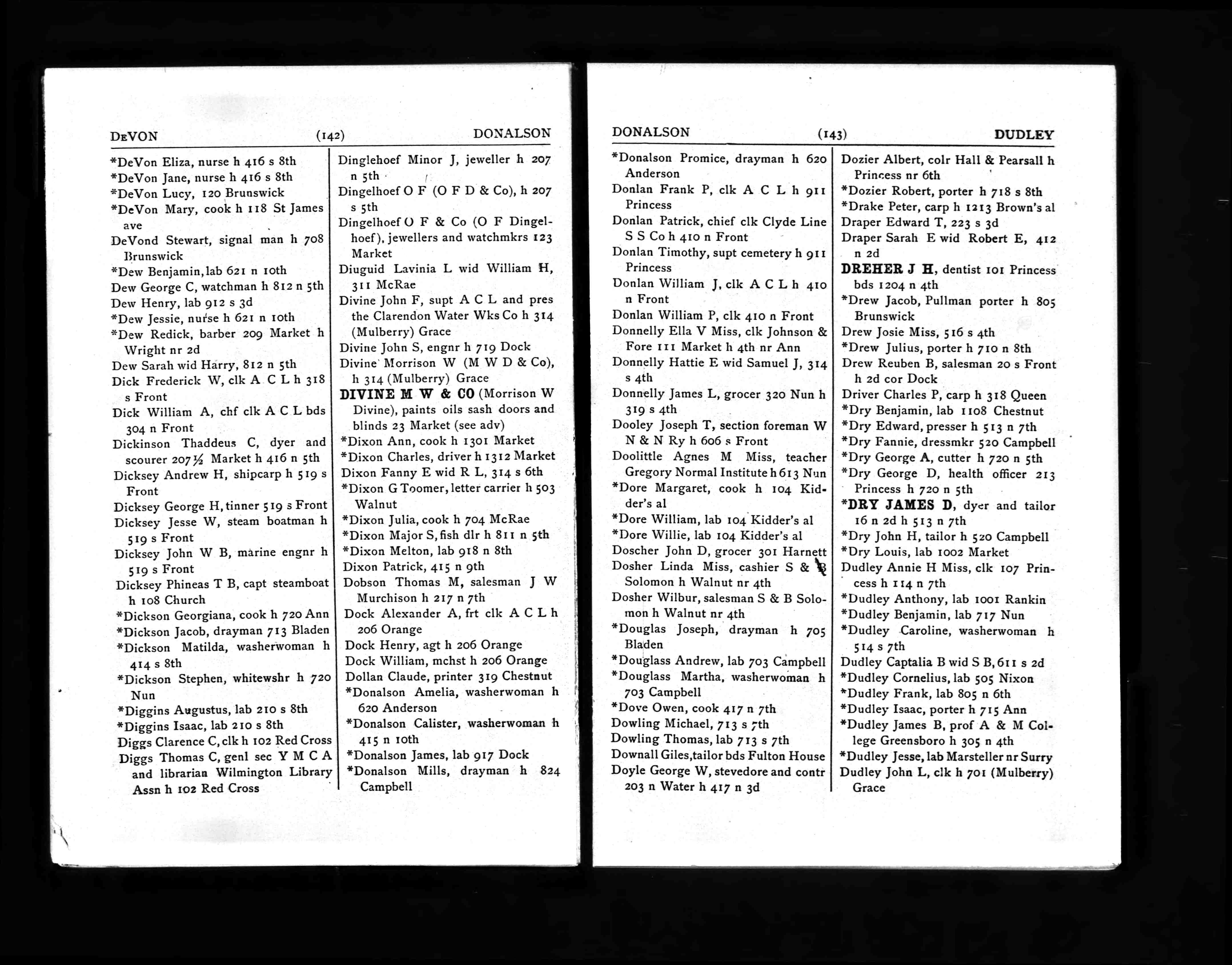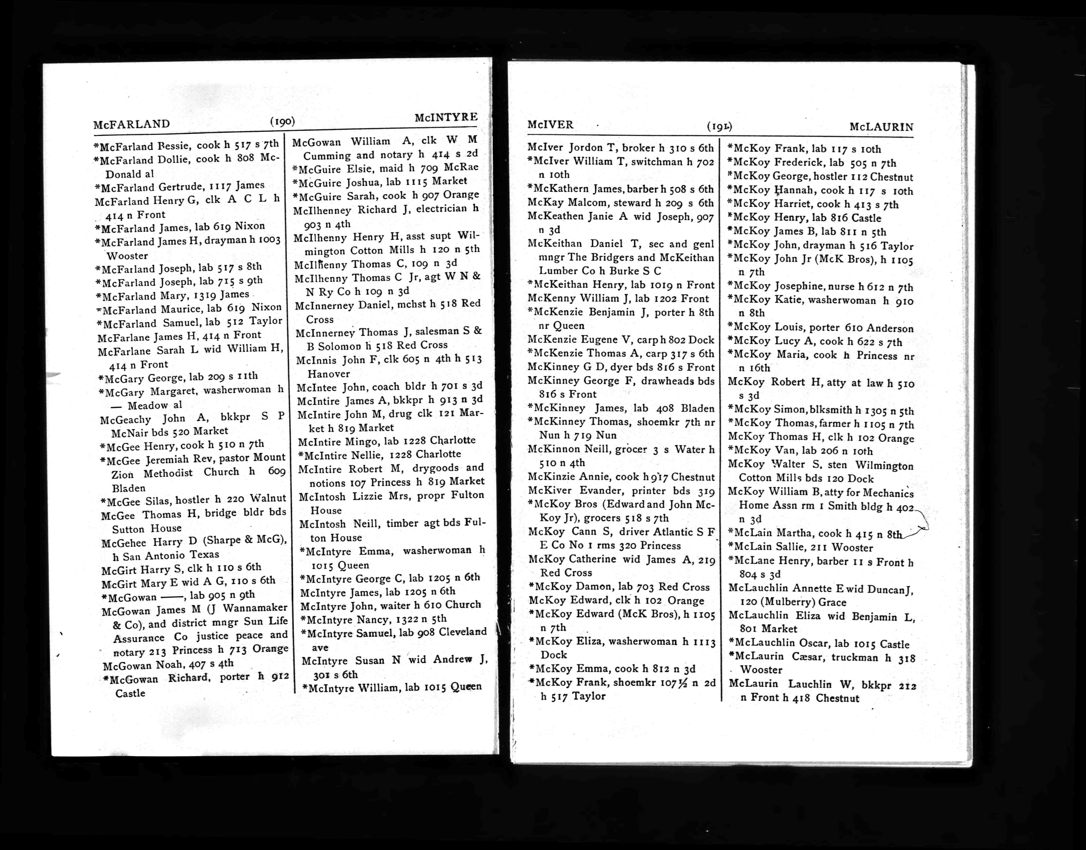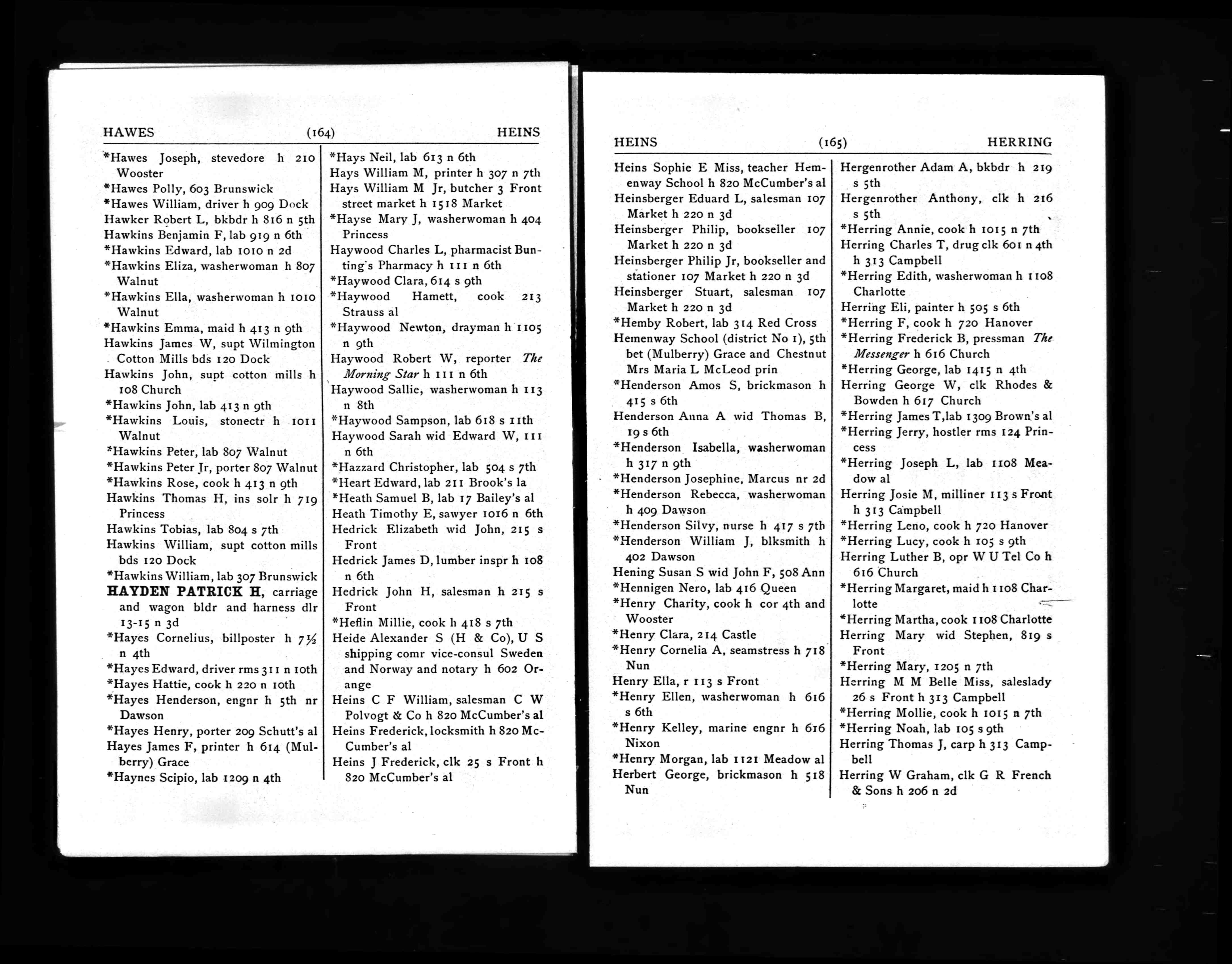 146 Ennett - Farrar 148 Farrell - Foster 150 Foster - Fuller 152 Fuller - Gaylord 154 Geams - Gore 156 Gore - Grier 158 Grier - Hall 160 Hall - Hanover 162 Hanscom - Hawes 164 Hawes - Herring 166 Herring - Hodges 168 Hodges - Howard 170 Howard - Humphrey 172 Humphrey - Jacobs 174 Jacobs - Johnson 176 Johnson - Jones 178 Jones - Kenan 180 Kendall - Koonce 182 Koonce - LeBoo 184 LeBoo - Litgen 186 Litgen - McCab 188 McCalister - McFarland 190 McFarland - McLaurin 192 McLaurine - MacKenzie 194 MacRae - Mask 196 Mason - Merrick 198 Merrick - Mitchell 200 Mitchell - Moore 202 Moore - Muller 204 Mumford - Neil 206 Neil - Nixon 208 Nobles - Ortmann 210 Ortmann - Pearsall 212 Pearsall - Pierce 214 Pierce - Prease 216 Prease - Reaves 218 Reaves - Richardson 220 Richardson - Robinson 222 Robinson - St James 224 St James - Schnibben 226 Schnibben - Shepard 228 Shepard - Skey 230 Skinner - Smith 232 Smith - Southerland 234 Southerland - Steljes 266 Steljes - Suggs 238 Suggs - Taylor 240 Taylor - Thorburn 242 Thorburn - Tyler 244 Tyler - Wade 246 Wade - Waters 248 Watrous - Wheeler 250 Wheeler - Willard 252 Willard - Williams 254 Williams - Wilmington 256 Wilson - Worth 258 Wortham - Young 260 Young - Zoeller Business Directory 261 Advertising Companies - Barbers 262 Barbers - Chemical Companies 264 China Decorators and Painters - Dressmakers 266 Dressmakers - Grocers 268 Grocers - Hatters 270 Hay, Grain and Feed Dealers - Lithographers 272 Livery Sale and Exchange Stables - Painters: Carriage 274 Painters: House and Sign - Saloons 276 Saloons - Wood Dealers 286 advertisements 287 advertisements |