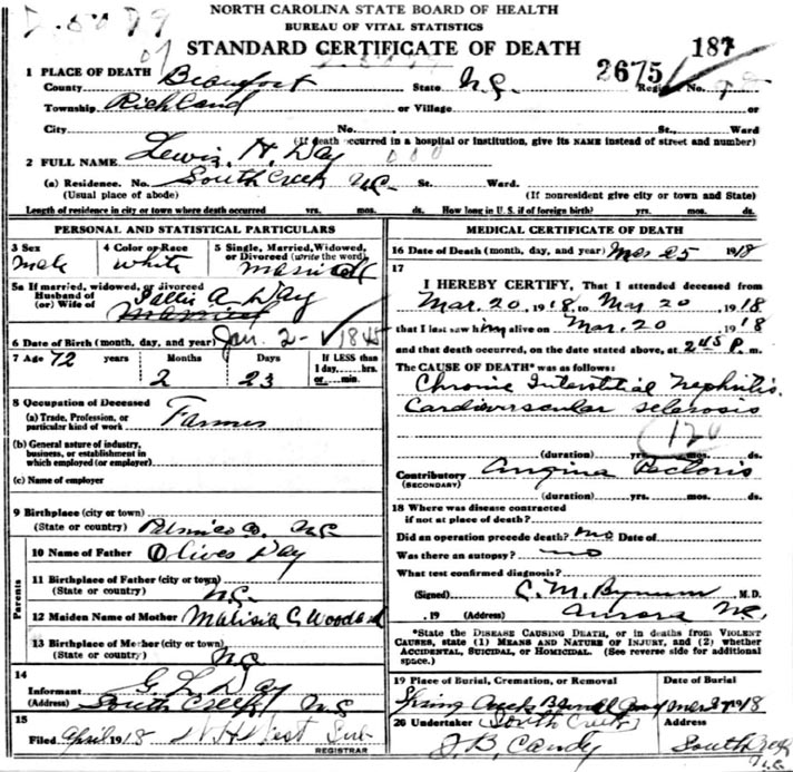 | 39 | 39 | Day, Lewis H. | w | m | 35 | m | Laborer | NC | NC | NC | Death Certificate | ||