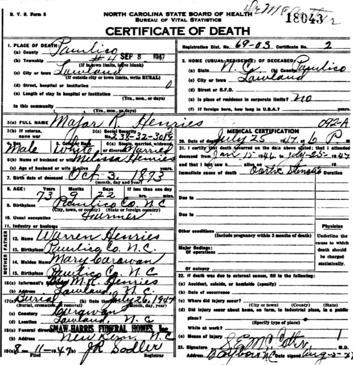 | Henry, Major R. | w | m | 6 | son | s | NC | NC | NC | Death Certificate | ||||