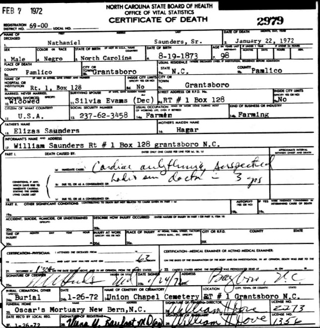 | Sanders, Nathaniel | b | m | 5 | son | s | no | NC | NC | NC | Death Certificate | |||