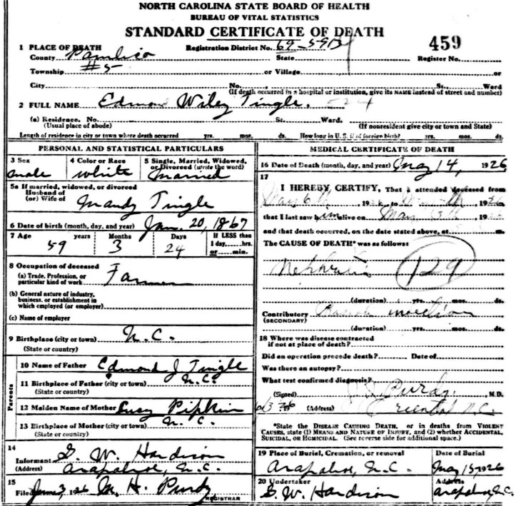 | Tingle, Edwin W. | w | m | 13 | son | s | Works on farm | NC | NC | NC | Death Certificate | |||