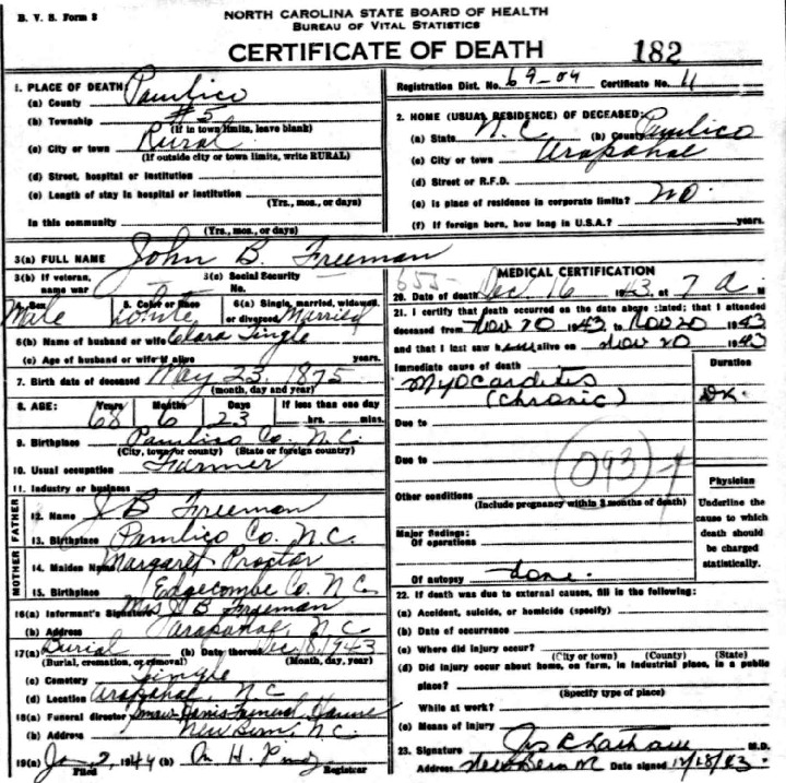 | Freeman, John B. | w | m | 5 | son | s | no | NC | NC | NC | Death Certificate | |||